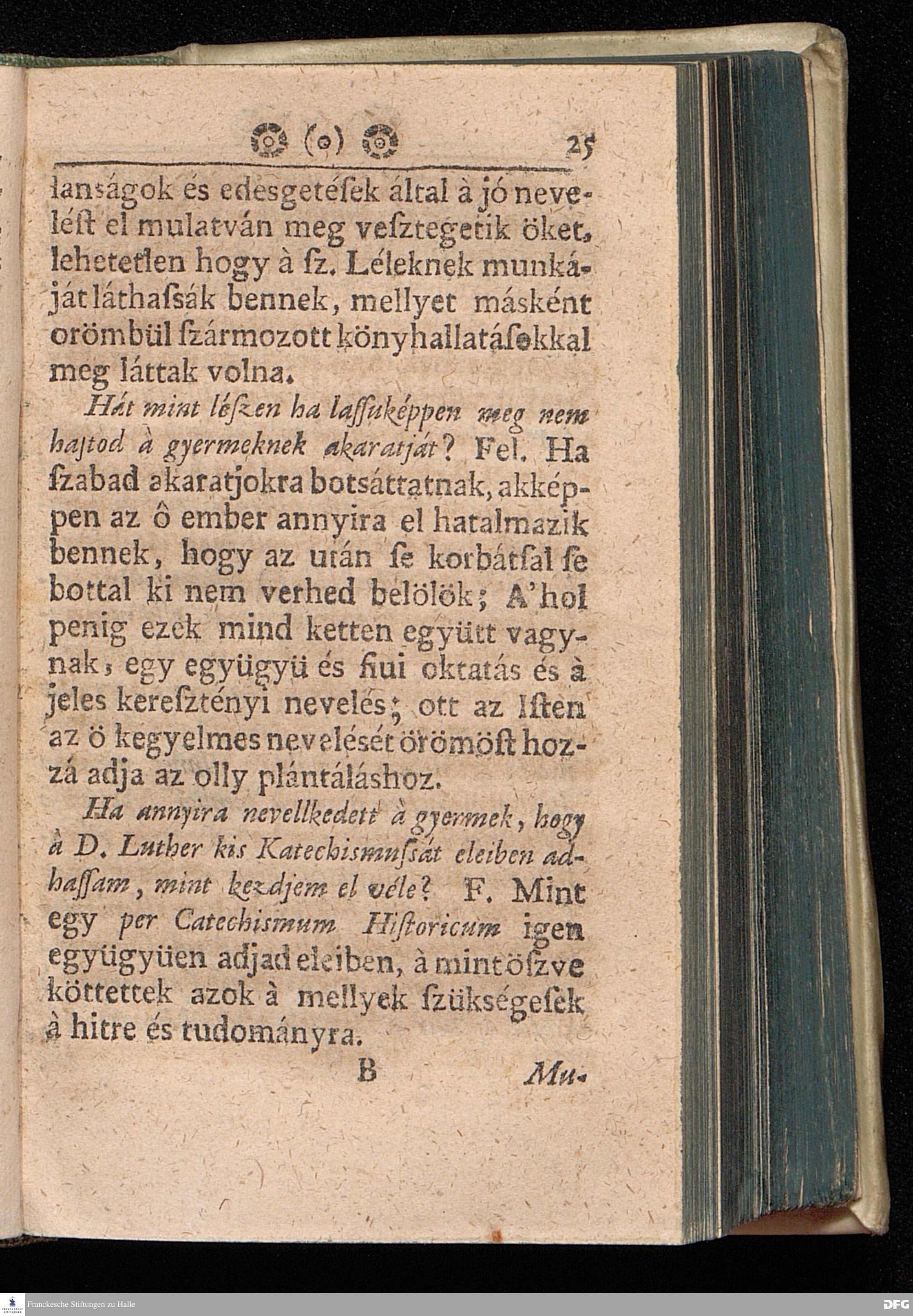 Augustus Herman. Franckenak, Sz. Ir. Prof. és Predikatornak Oktatása A© GYERMEK NEVELE'SRüL Az igaz Isteni félelemre és kegyességre Mint vitessenek à kis Gyermekek; Köz beszélgetésbe foglaltatott Virth Ambrus Norimb. Predik. által, most penig szükséges voltáert és à közönséges haszonért kerdésekbe foglalva Magyar nyelvre fordétratott: Melly munkával minden valláson lévök alkalmassan élhetnek, mert itt à hit dolgárul nem disputáltatik, hanem Kiváltképpen à kegyes SZÜLE©KNEK és à hiv PRAECEPTOROKNAK jó és kegyes tanáts adatik mint viseljék magokat jó lelki esmérettel à gyermekek kor¯ul, bog y az ö tisztekben az Istennek büvéges aldását várhassák magokra. Nyomtattatott Hallában Orbán István által. 1711
