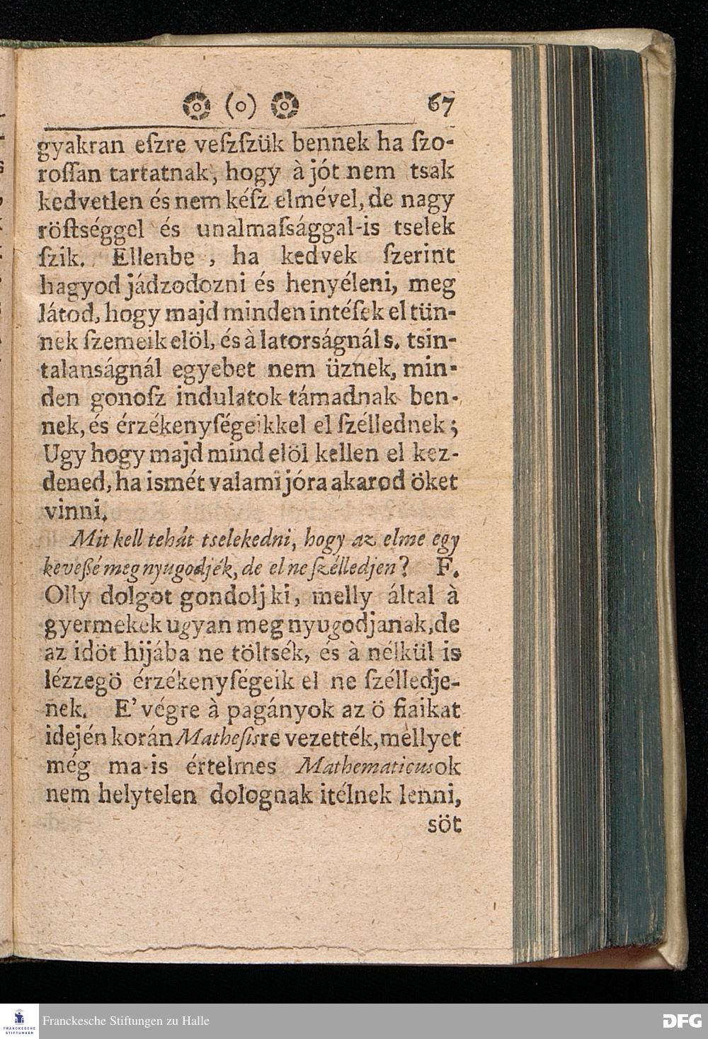 Augustus Herman. Franckenak, Sz. Ir. Prof. és Predikatornak Oktatása A© GYERMEK NEVELE'SRüL Az igaz Isteni félelemre és kegyességre Mint vitessenek à kis Gyermekek; Köz beszélgetésbe foglaltatott Virth Ambrus Norimb. Predik. által, most penig szükséges voltáert és à közönséges haszonért kerdésekbe foglalva Magyar nyelvre fordétratott: Melly munkával minden valláson lévök alkalmassan élhetnek, mert itt à hit dolgárul nem disputáltatik, hanem Kiváltképpen à kegyes SZÜLE©KNEK és à hiv PRAECEPTOROKNAK jó és kegyes tanáts adatik mint viseljék magokat jó lelki esmérettel à gyermekek kor¯ul, bog y az ö tisztekben az Istennek büvéges aldását várhassák magokra. Nyomtattatott Hallában Orbán István által. 1711