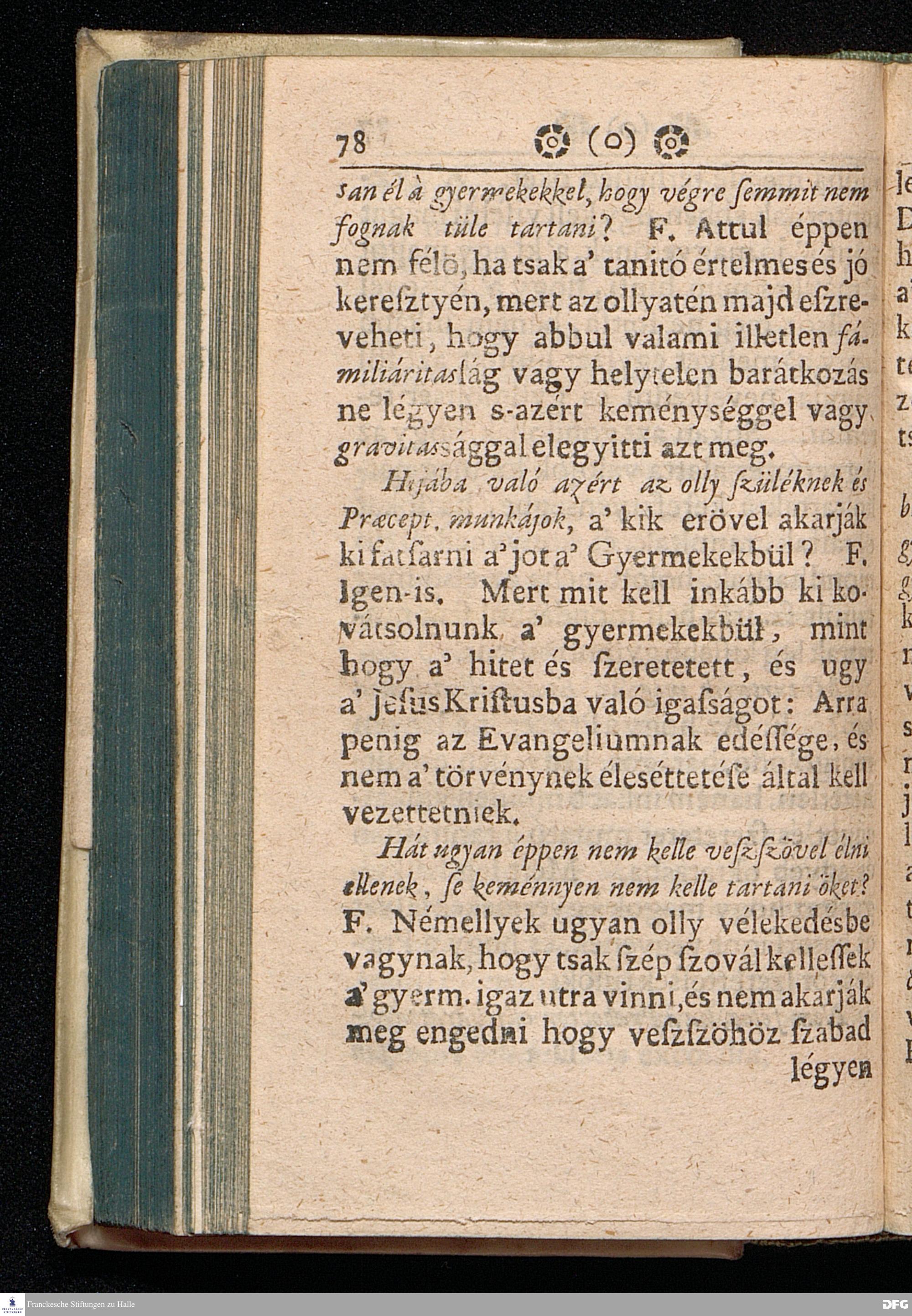 Augustus Herman. Franckenak, Sz. Ir. Prof. és Predikatornak Oktatása A© GYERMEK NEVELE'SRüL Az igaz Isteni félelemre és kegyességre Mint vitessenek à kis Gyermekek; Köz beszélgetésbe foglaltatott Virth Ambrus Norimb. Predik. által, most penig szükséges voltáert és à közönséges haszonért kerdésekbe foglalva Magyar nyelvre fordétratott: Melly munkával minden valláson lévök alkalmassan élhetnek, mert itt à hit dolgárul nem disputáltatik, hanem Kiváltképpen à kegyes SZÜLE©KNEK és à hiv PRAECEPTOROKNAK jó és kegyes tanáts adatik mint viseljék magokat jó lelki esmérettel à gyermekek kor¯ul, bog y az ö tisztekben az Istennek büvéges aldását várhassák magokra. Nyomtattatott Hallában Orbán István által. 1711