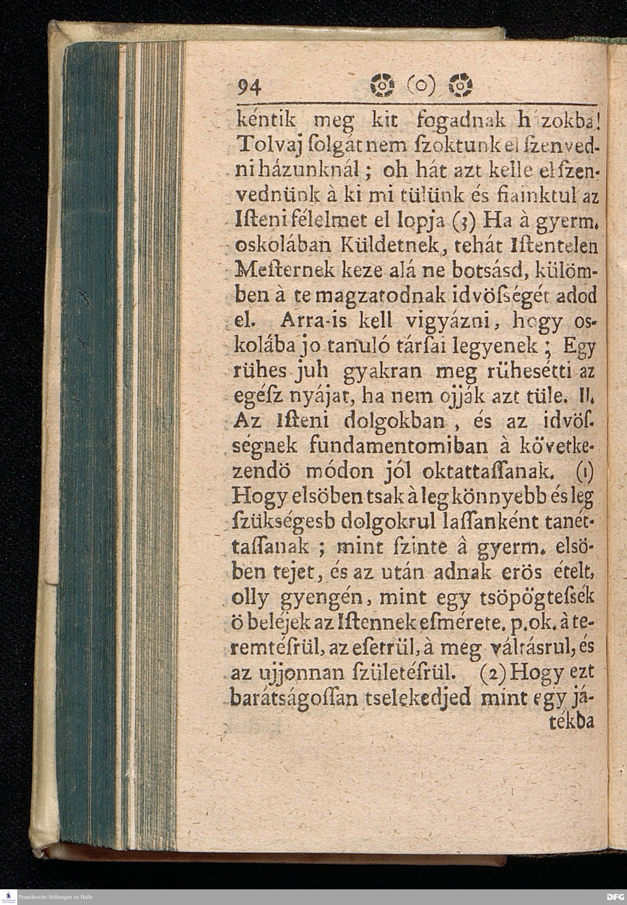 Augustus Herman. Franckenak, Sz. Ir. Prof. és Predikatornak Oktatása A© GYERMEK NEVELE'SRüL Az igaz Isteni félelemre és kegyességre Mint vitessenek à kis Gyermekek; Köz beszélgetésbe foglaltatott Virth Ambrus Norimb. Predik. által, most penig szükséges voltáert és à közönséges haszonért kerdésekbe foglalva Magyar nyelvre fordétratott: Melly munkával minden valláson lévök alkalmassan élhetnek, mert itt à hit dolgárul nem disputáltatik, hanem Kiváltképpen à kegyes SZÜLE©KNEK és à hiv PRAECEPTOROKNAK jó és kegyes tanáts adatik mint viseljék magokat jó lelki esmérettel à gyermekek kor¯ul, bog y az ö tisztekben az Istennek büvéges aldását várhassák magokra. Nyomtattatott Hallában Orbán István által. 1711