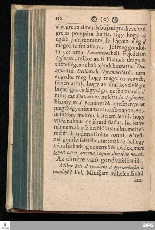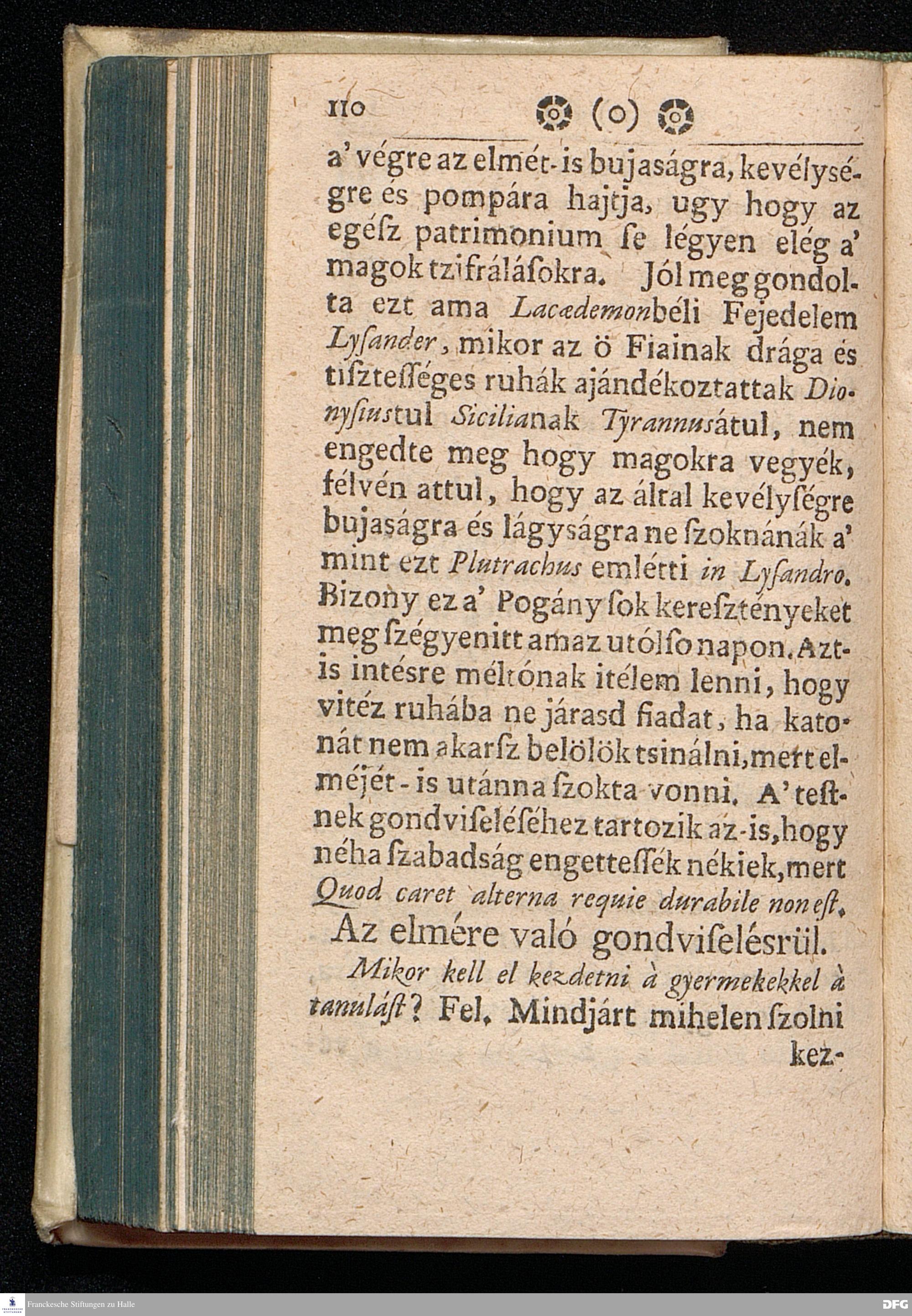 Augustus Herman. Franckenak, Sz. Ir. Prof. és Predikatornak Oktatása A© GYERMEK NEVELE'SRüL Az igaz Isteni félelemre és kegyességre Mint vitessenek à kis Gyermekek; Köz beszélgetésbe foglaltatott Virth Ambrus Norimb. Predik. által, most penig szükséges voltáert és à közönséges haszonért kerdésekbe foglalva Magyar nyelvre fordétratott: Melly munkával minden valláson lévök alkalmassan élhetnek, mert itt à hit dolgárul nem disputáltatik, hanem Kiváltképpen à kegyes SZÜLE©KNEK és à hiv PRAECEPTOROKNAK jó és kegyes tanáts adatik mint viseljék magokat jó lelki esmérettel à gyermekek kor¯ul, bog y az ö tisztekben az Istennek büvéges aldását várhassák magokra. Nyomtattatott Hallában Orbán István által. 1711