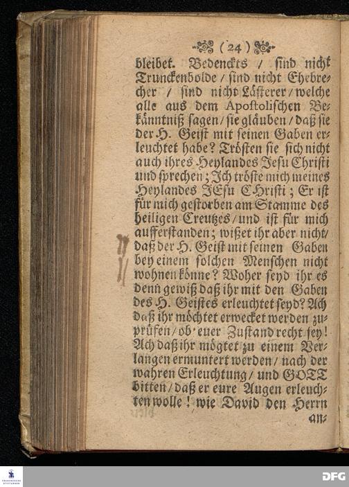 Die Lehre von der Erleuchtung / In einer Predigt Uber das Evangelium Luc.XVIII, v.31==43, am Sonntag nach[!] Quinquagesimæ Anno 1698, In der St.Georgen=Kirche zu Glaucha an Halle vorgestellet von M.August Hermann Francken / Gr.& OO.LL.P.P.& P.Glauch. HALLE / Gedruckt bey Christian Henckel / Univers.Buchdr. 1698.