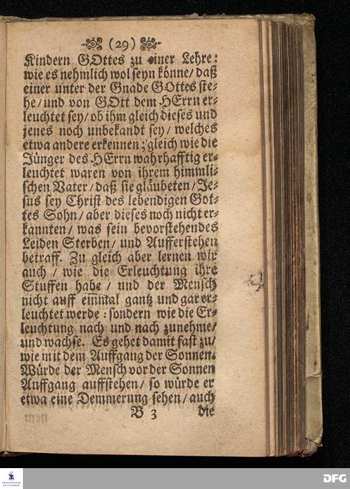 Die Lehre von der Erleuchtung / In einer Predigt Uber das Evangelium Luc.XVIII, v.31==43, am Sonntag nach[!] Quinquagesimæ Anno 1698, In der St.Georgen=Kirche zu Glaucha an Halle vorgestellet von M.August Hermann Francken / Gr.& OO.LL.P.P.& P.Glauch. HALLE / Gedruckt bey Christian Henckel / Univers.Buchdr. 1698.