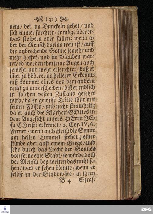 Die Lehre von der Erleuchtung / In einer Predigt Uber das Evangelium Luc.XVIII, v.31==43, am Sonntag nach[!] Quinquagesimæ Anno 1698, In der St.Georgen=Kirche zu Glaucha an Halle vorgestellet von M.August Hermann Francken / Gr.& OO.LL.P.P.& P.Glauch. HALLE / Gedruckt bey Christian Henckel / Univers.Buchdr. 1698.