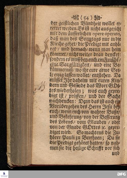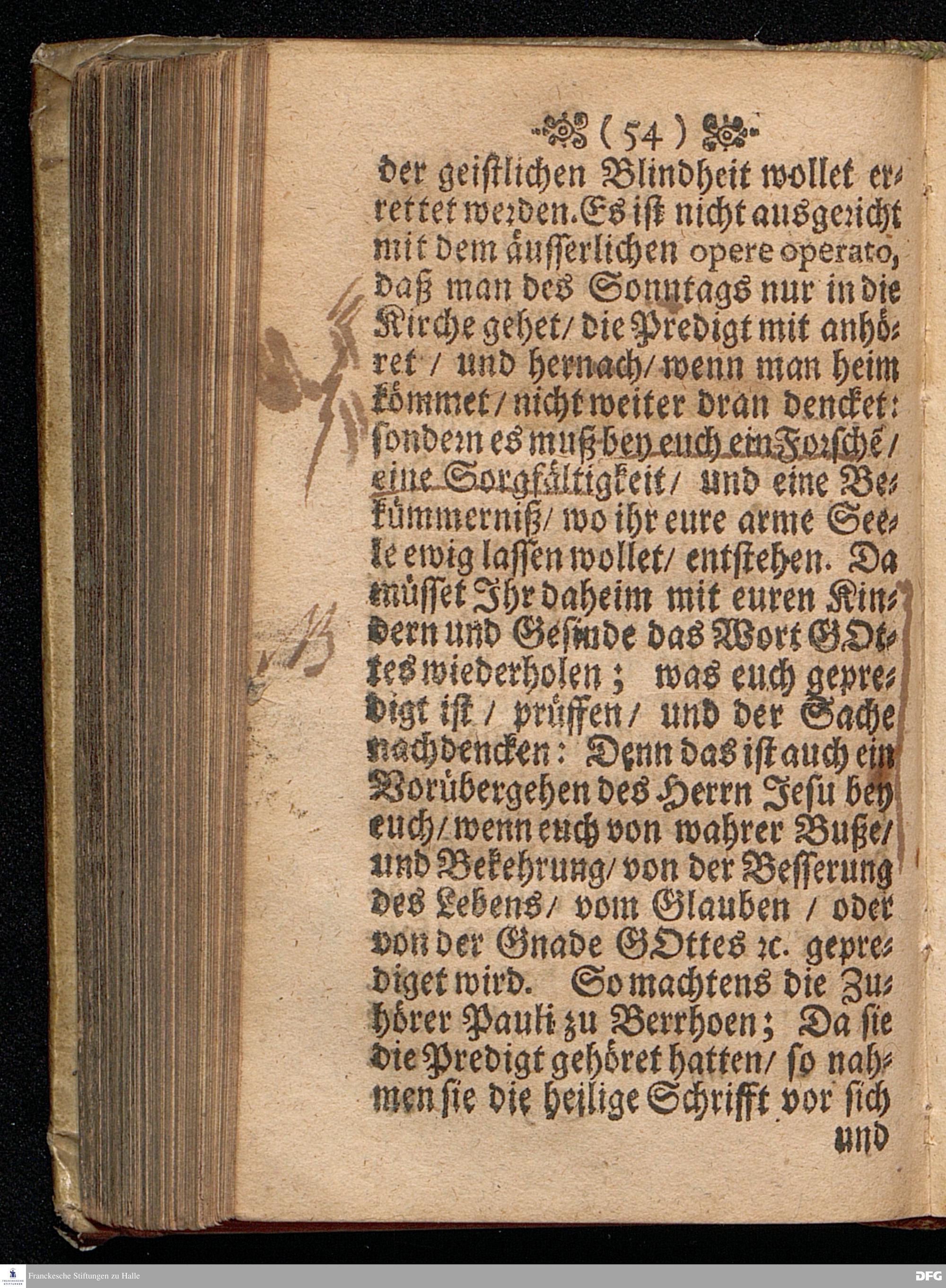 Die Lehre von der Erleuchtung / In einer Predigt Uber das Evangelium Luc.XVIII, v.31==43, am Sonntag nach[!] Quinquagesimæ Anno 1698, In der St.Georgen=Kirche zu Glaucha an Halle vorgestellet von M.August Hermann Francken / Gr.& OO.LL.P.P.& P.Glauch. HALLE / Gedruckt bey Christian Henckel / Univers.Buchdr. 1698.