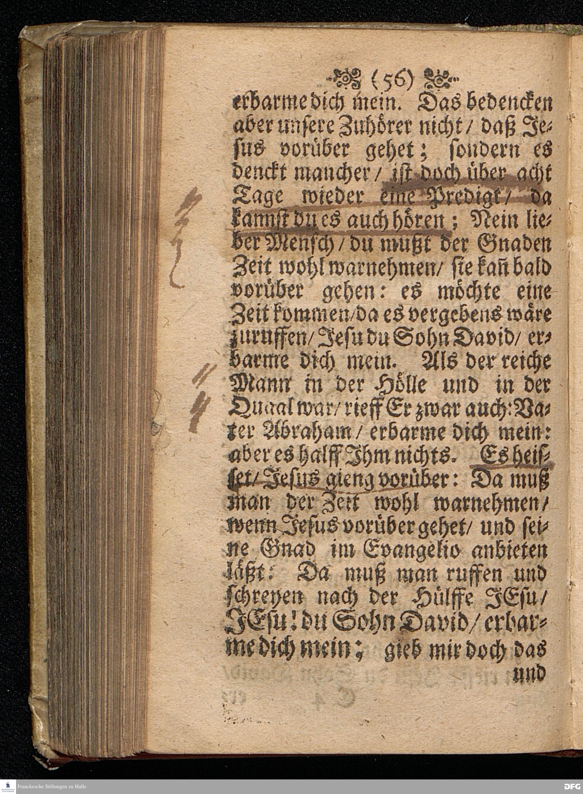 Die Lehre von der Erleuchtung / In einer Predigt Uber das Evangelium Luc.XVIII, v.31==43, am Sonntag nach[!] Quinquagesimæ Anno 1698, In der St.Georgen=Kirche zu Glaucha an Halle vorgestellet von M.August Hermann Francken / Gr.& OO.LL.P.P.& P.Glauch. HALLE / Gedruckt bey Christian Henckel / Univers.Buchdr. 1698.