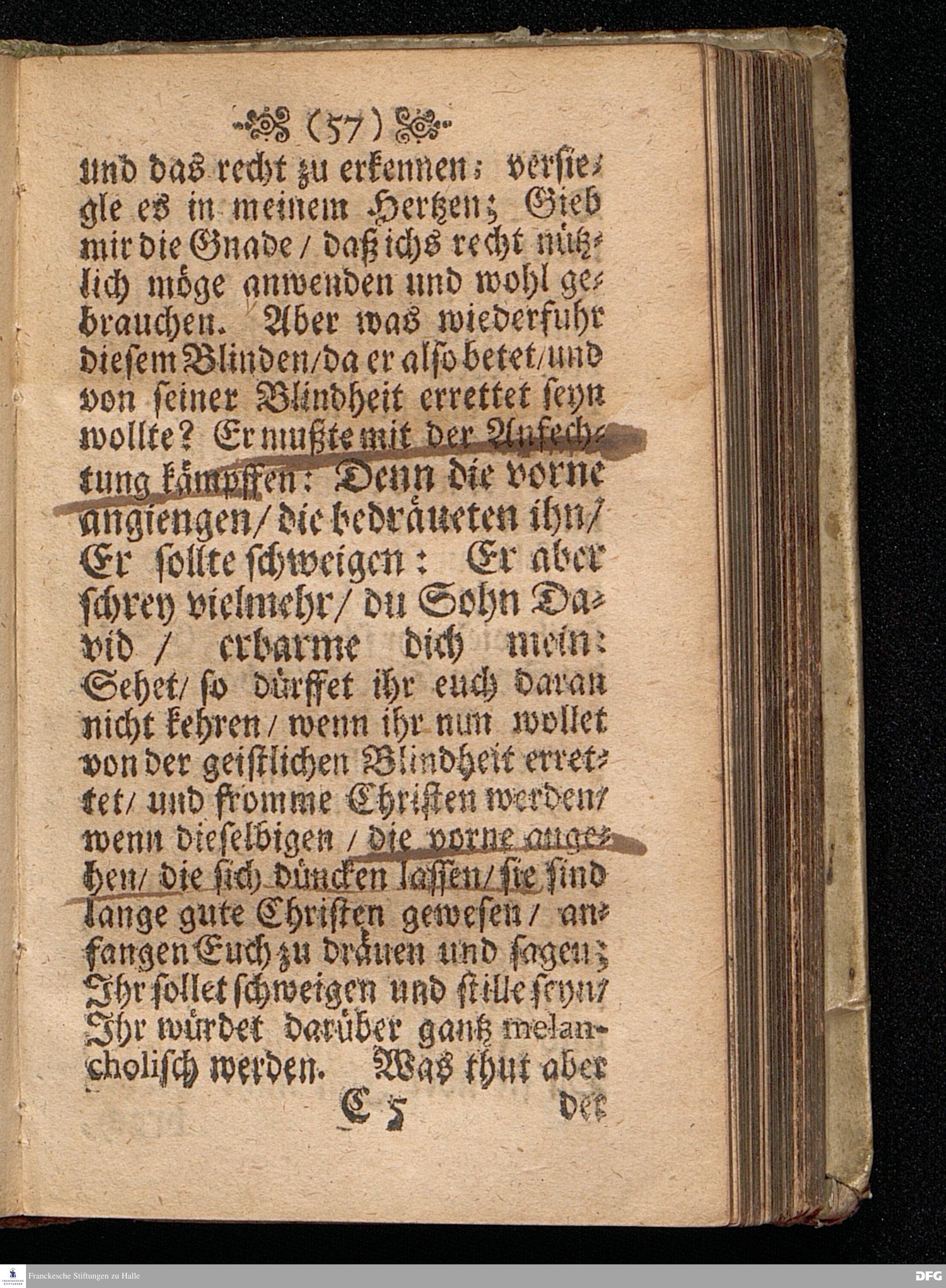Die Lehre von der Erleuchtung / In einer Predigt Uber das Evangelium Luc.XVIII, v.31==43, am Sonntag nach[!] Quinquagesimæ Anno 1698, In der St.Georgen=Kirche zu Glaucha an Halle vorgestellet von M.August Hermann Francken / Gr.& OO.LL.P.P.& P.Glauch. HALLE / Gedruckt bey Christian Henckel / Univers.Buchdr. 1698.