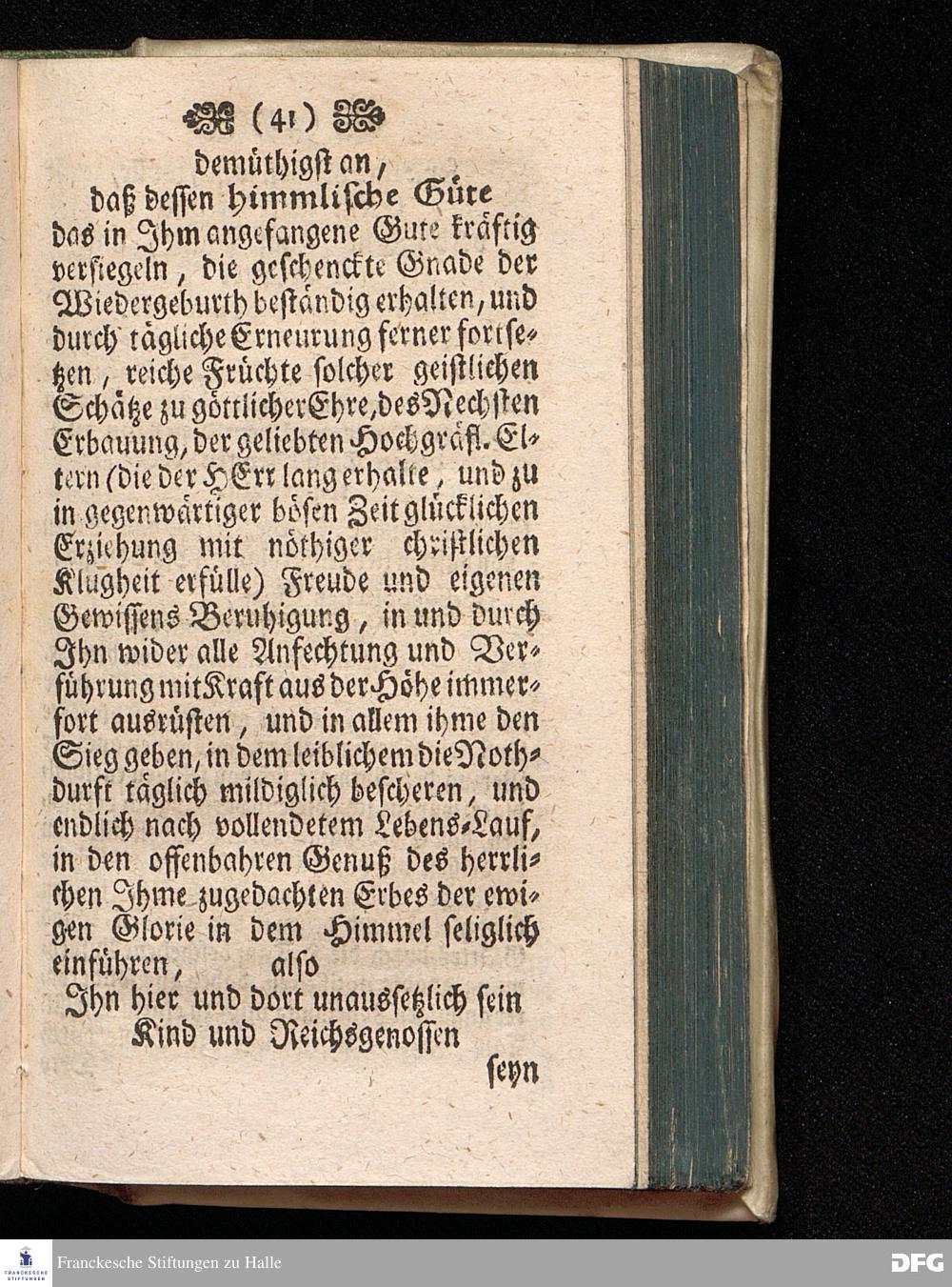 Lobwürdiges Exempel Des Weyland Hochgebohrnen Reichs=Grafen und Herrn HERRN Heinrich des XXIII. Jüngerer Linie Reussen / Grafen und Herrn von Plauen, Herrn zu Graitz, Cranichfeld, Gera, Schlaitz und Lobenstein )(. In einer Parænetischen Lection im öffentlichen Auditorio denen Studiosis Theologiæ vorgestellet und nebst einigen erbaulichen Beylagen herausgegeben von August Hermann Francken / S.Th.Prof.Past.Vlric.& Scholarcha. Der Jugend in den Schulen des Waysen=Hauses nach gehaltenem Examine ausgetheilet d. 24.Dec.1723. HALLE In Verlegung des Wäysenhauses MDCCXXIII.