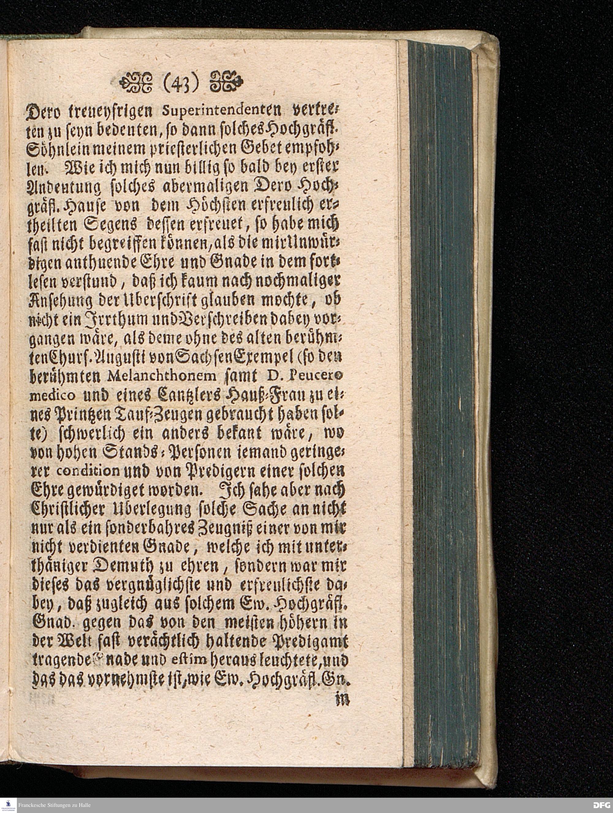 Lobwürdiges Exempel Des Weyland Hochgebohrnen Reichs=Grafen und Herrn HERRN Heinrich des XXIII. Jüngerer Linie Reussen / Grafen und Herrn von Plauen, Herrn zu Graitz, Cranichfeld, Gera, Schlaitz und Lobenstein )(. In einer Parænetischen Lection im öffentlichen Auditorio denen Studiosis Theologiæ vorgestellet und nebst einigen erbaulichen Beylagen herausgegeben von August Hermann Francken / S.Th.Prof.Past.Vlric.& Scholarcha. Der Jugend in den Schulen des Waysen=Hauses nach gehaltenem Examine ausgetheilet d. 24.Dec.1723. HALLE In Verlegung des Wäysenhauses MDCCXXIII.