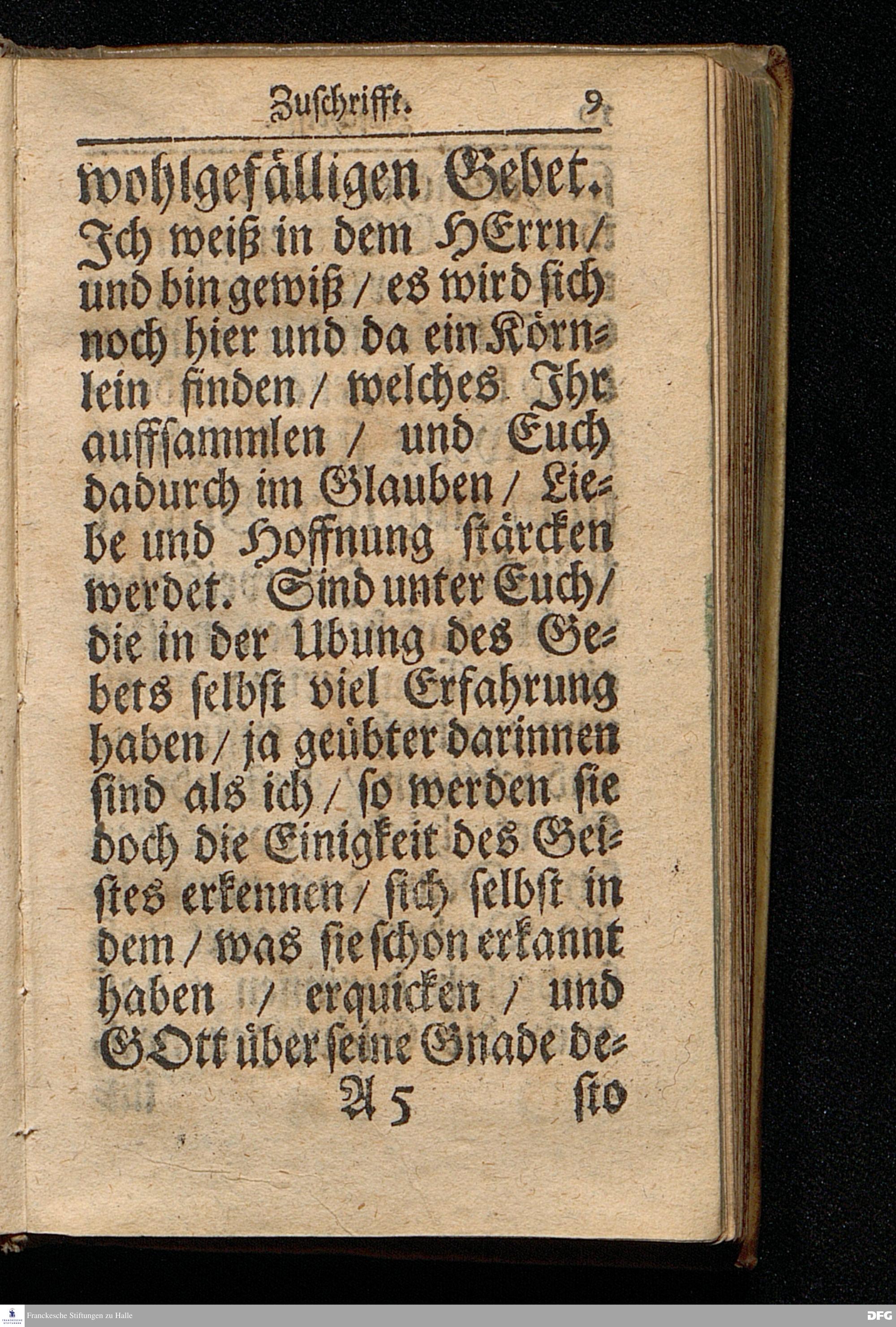 Aug.Herm.Franckens / S.S.Theol.P.Ord.& Past.Glauch. Schrifftmäßige Anweisung Recht und GOTT wohlgefällig Zu Beten / Nebst Einer Anfrage An die Hochlöbl.Theol.Facult. Zu KIEL Und deren RESPONSO, Die Gewißheit und Versicherung der Erhörung des Gebets betreffend. Andere EDITION. CUM PRIVILEGIO. HALLE /Gedruckt und verlegt im Wäysen=Hause. 1703.