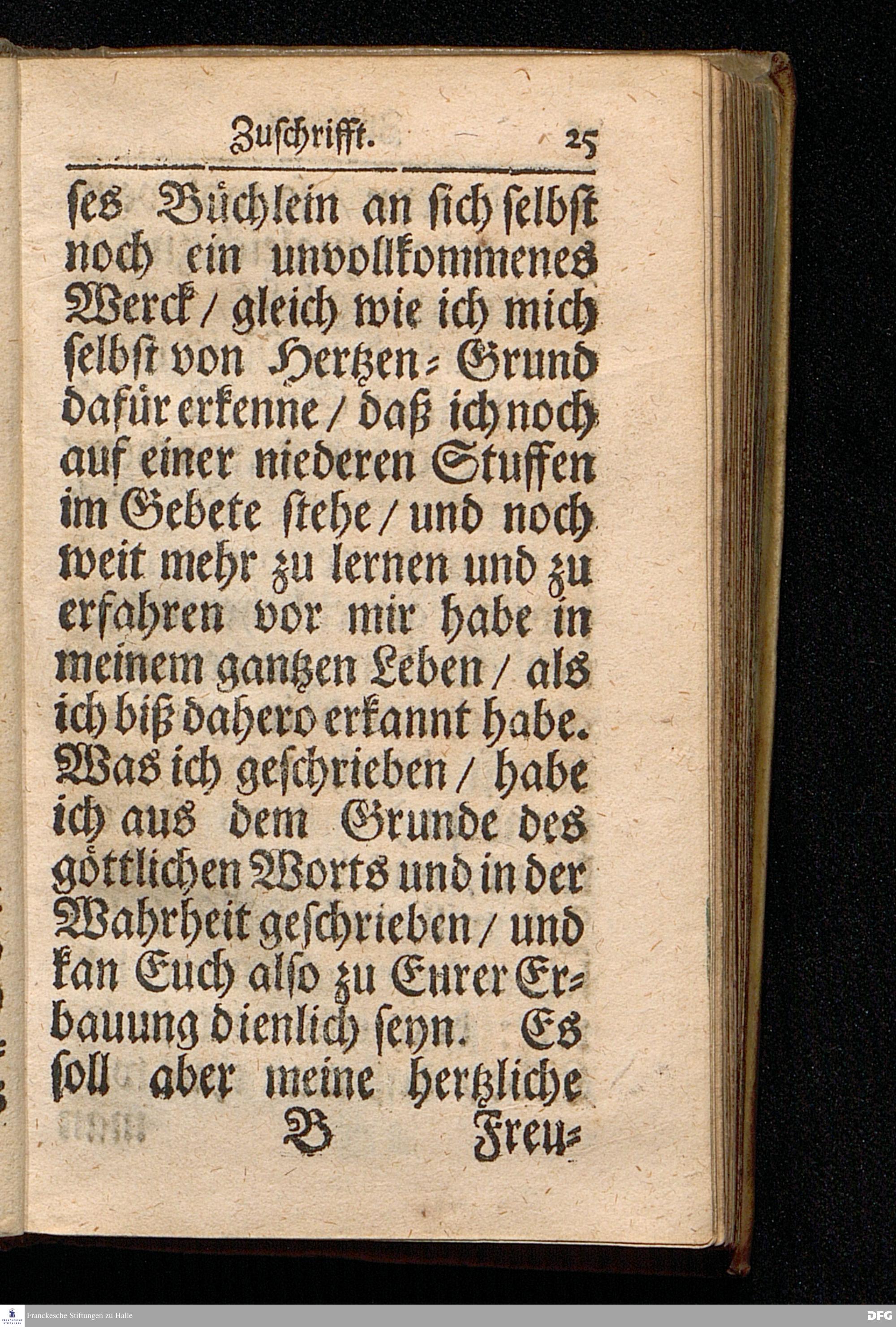 Aug.Herm.Franckens / S.S.Theol.P.Ord.& Past.Glauch. Schrifftmäßige Anweisung Recht und GOTT wohlgefällig Zu Beten / Nebst Einer Anfrage An die Hochlöbl.Theol.Facult. Zu KIEL Und deren RESPONSO, Die Gewißheit und Versicherung der Erhörung des Gebets betreffend. Andere EDITION. CUM PRIVILEGIO. HALLE /Gedruckt und verlegt im Wäysen=Hause. 1703.
