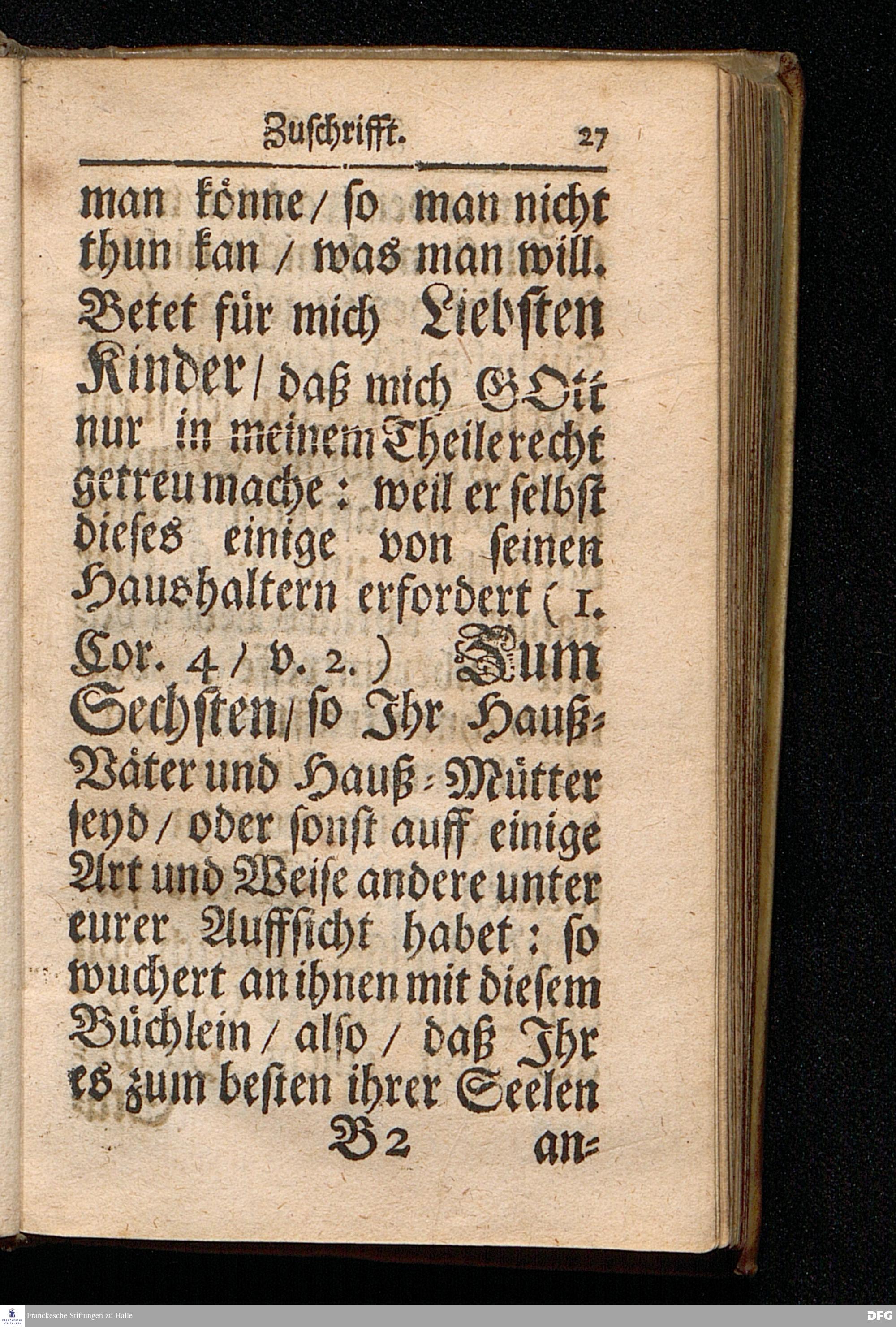 Aug.Herm.Franckens / S.S.Theol.P.Ord.& Past.Glauch. Schrifftmäßige Anweisung Recht und GOTT wohlgefällig Zu Beten / Nebst Einer Anfrage An die Hochlöbl.Theol.Facult. Zu KIEL Und deren RESPONSO, Die Gewißheit und Versicherung der Erhörung des Gebets betreffend. Andere EDITION. CUM PRIVILEGIO. HALLE /Gedruckt und verlegt im Wäysen=Hause. 1703.