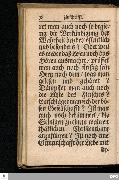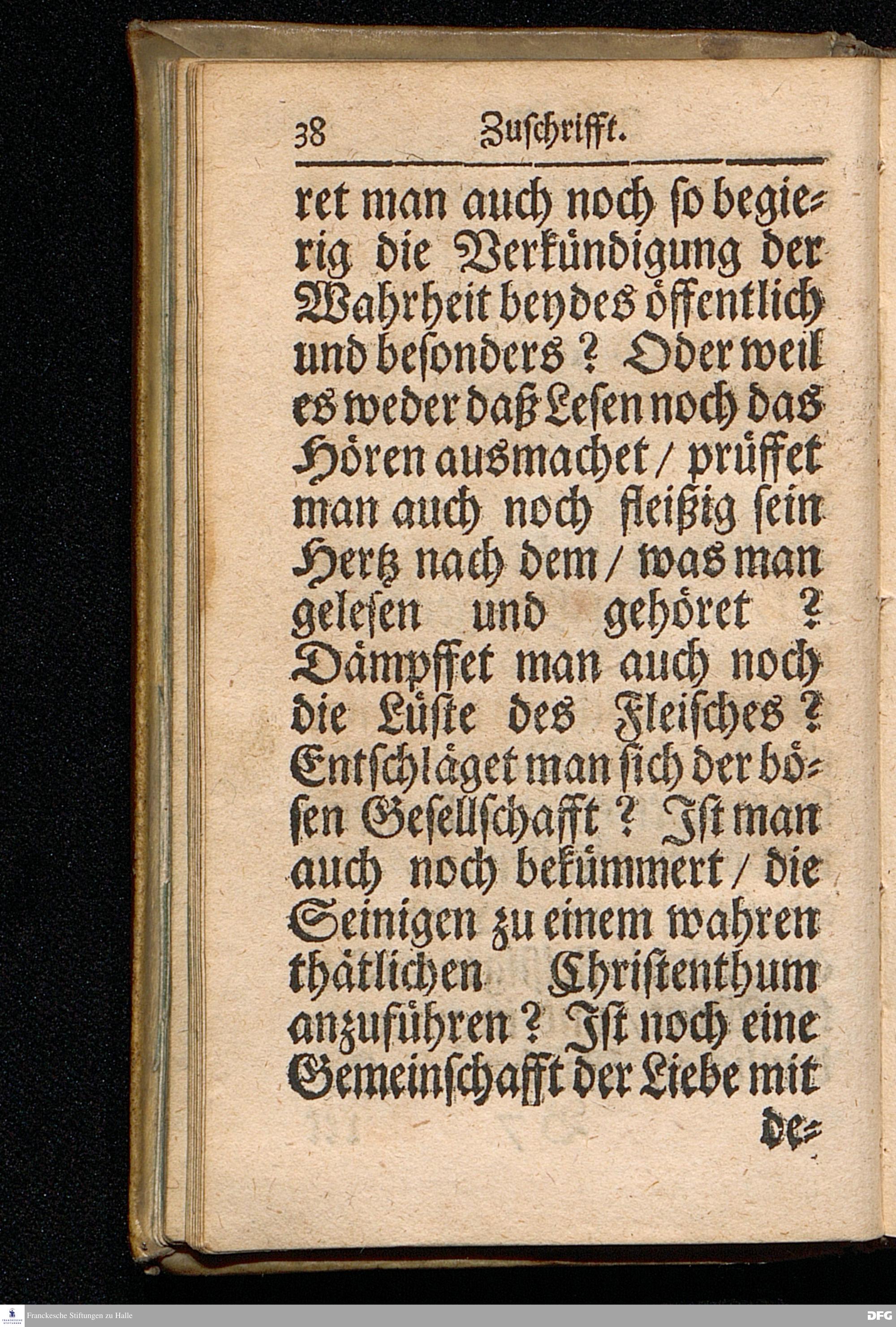 Aug.Herm.Franckens / S.S.Theol.P.Ord.& Past.Glauch. Schrifftmäßige Anweisung Recht und GOTT wohlgefällig Zu Beten / Nebst Einer Anfrage An die Hochlöbl.Theol.Facult. Zu KIEL Und deren RESPONSO, Die Gewißheit und Versicherung der Erhörung des Gebets betreffend. Andere EDITION. CUM PRIVILEGIO. HALLE /Gedruckt und verlegt im Wäysen=Hause. 1703.
