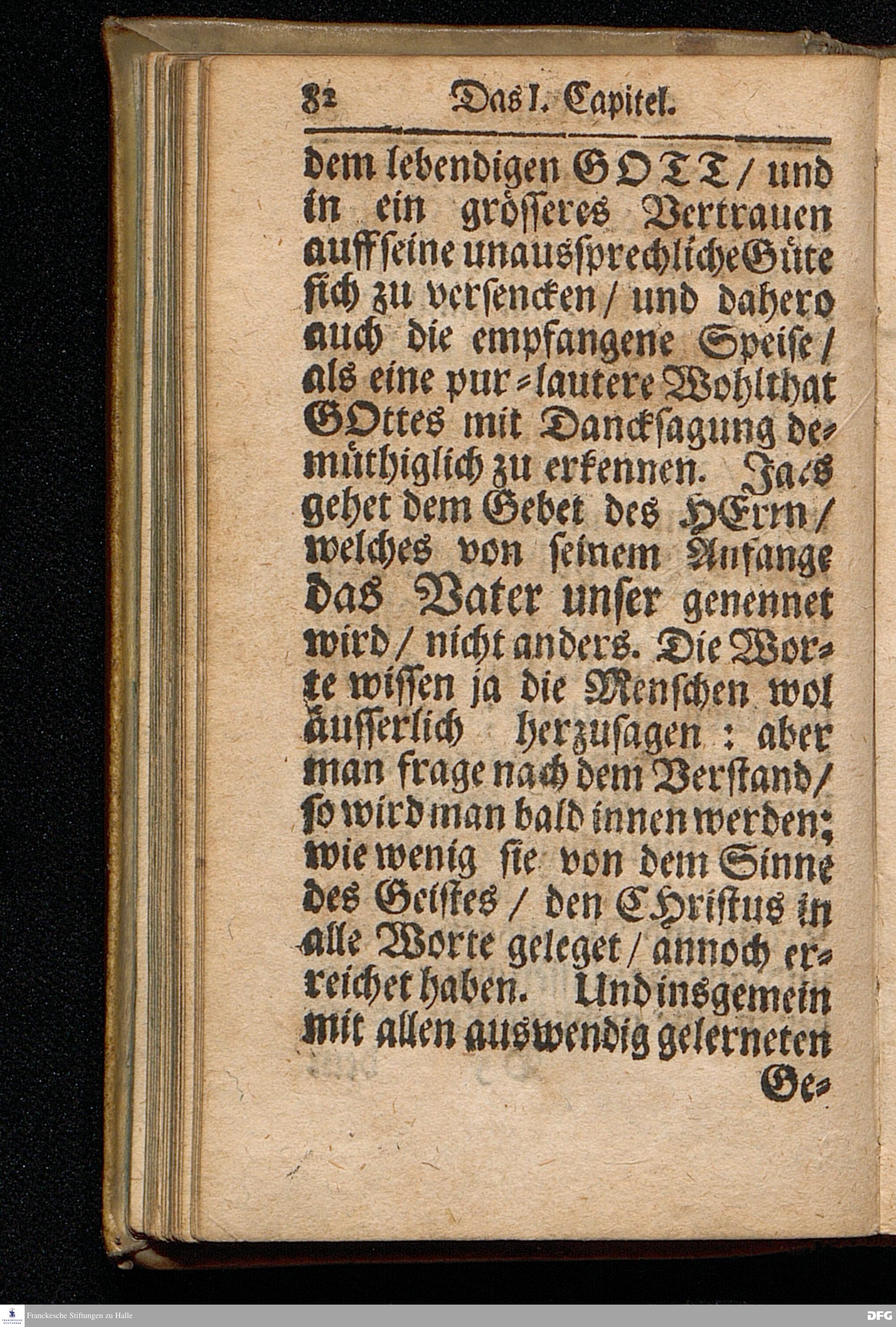 Aug.Herm.Franckens / S.S.Theol.P.Ord.& Past.Glauch. Schrifftmäßige Anweisung Recht und GOTT wohlgefällig Zu Beten / Nebst Einer Anfrage An die Hochlöbl.Theol.Facult. Zu KIEL Und deren RESPONSO, Die Gewißheit und Versicherung der Erhörung des Gebets betreffend. Andere EDITION. CUM PRIVILEGIO. HALLE /Gedruckt und verlegt im Wäysen=Hause. 1703.