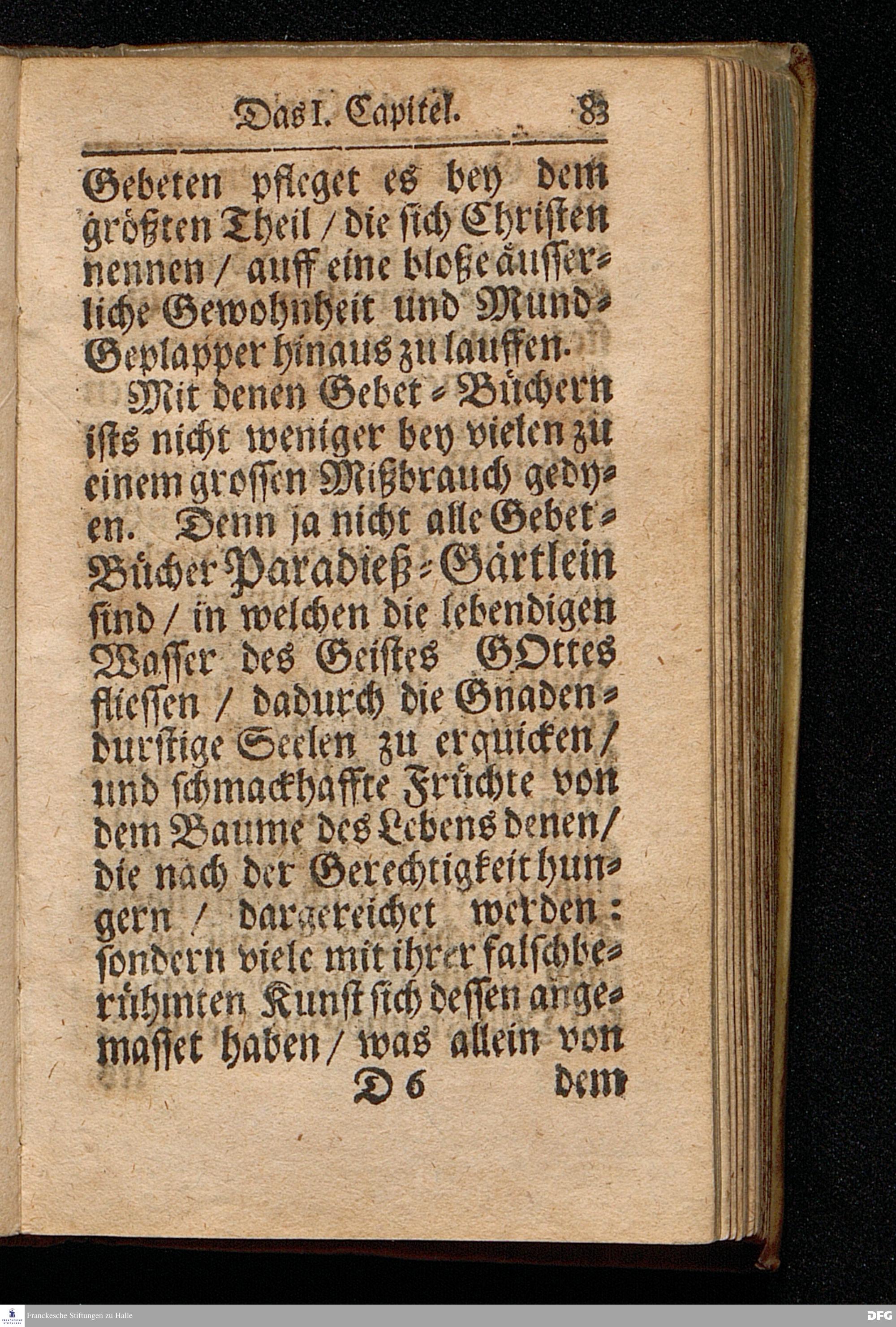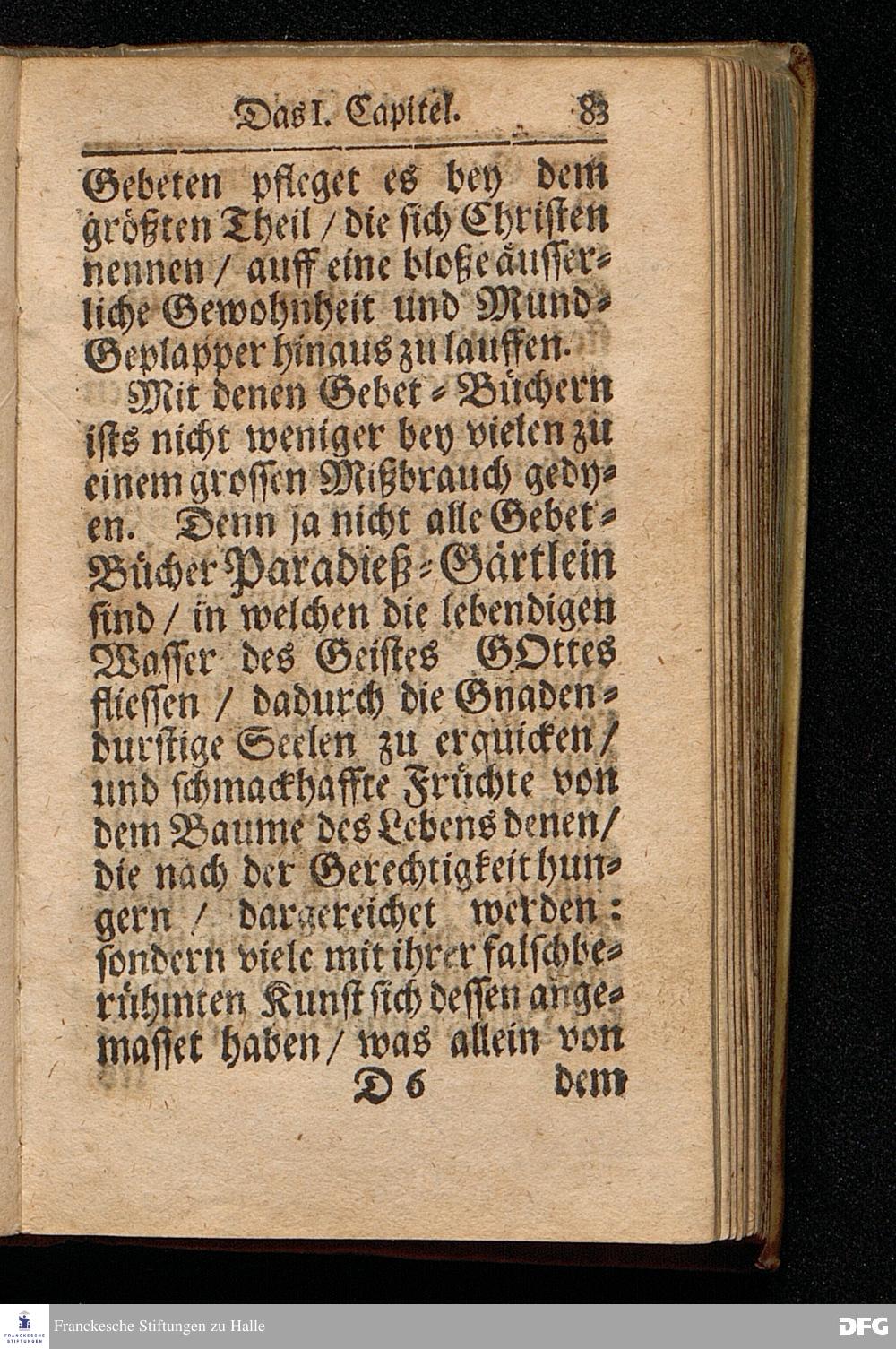 Aug.Herm.Franckens / S.S.Theol.P.Ord.& Past.Glauch. Schrifftmäßige Anweisung Recht und GOTT wohlgefällig Zu Beten / Nebst Einer Anfrage An die Hochlöbl.Theol.Facult. Zu KIEL Und deren RESPONSO, Die Gewißheit und Versicherung der Erhörung des Gebets betreffend. Andere EDITION. CUM PRIVILEGIO. HALLE /Gedruckt und verlegt im Wäysen=Hause. 1703.