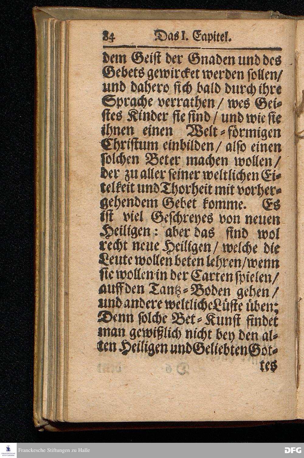 Aug.Herm.Franckens / S.S.Theol.P.Ord.& Past.Glauch. Schrifftmäßige Anweisung Recht und GOTT wohlgefällig Zu Beten / Nebst Einer Anfrage An die Hochlöbl.Theol.Facult. Zu KIEL Und deren RESPONSO, Die Gewißheit und Versicherung der Erhörung des Gebets betreffend. Andere EDITION. CUM PRIVILEGIO. HALLE /Gedruckt und verlegt im Wäysen=Hause. 1703.