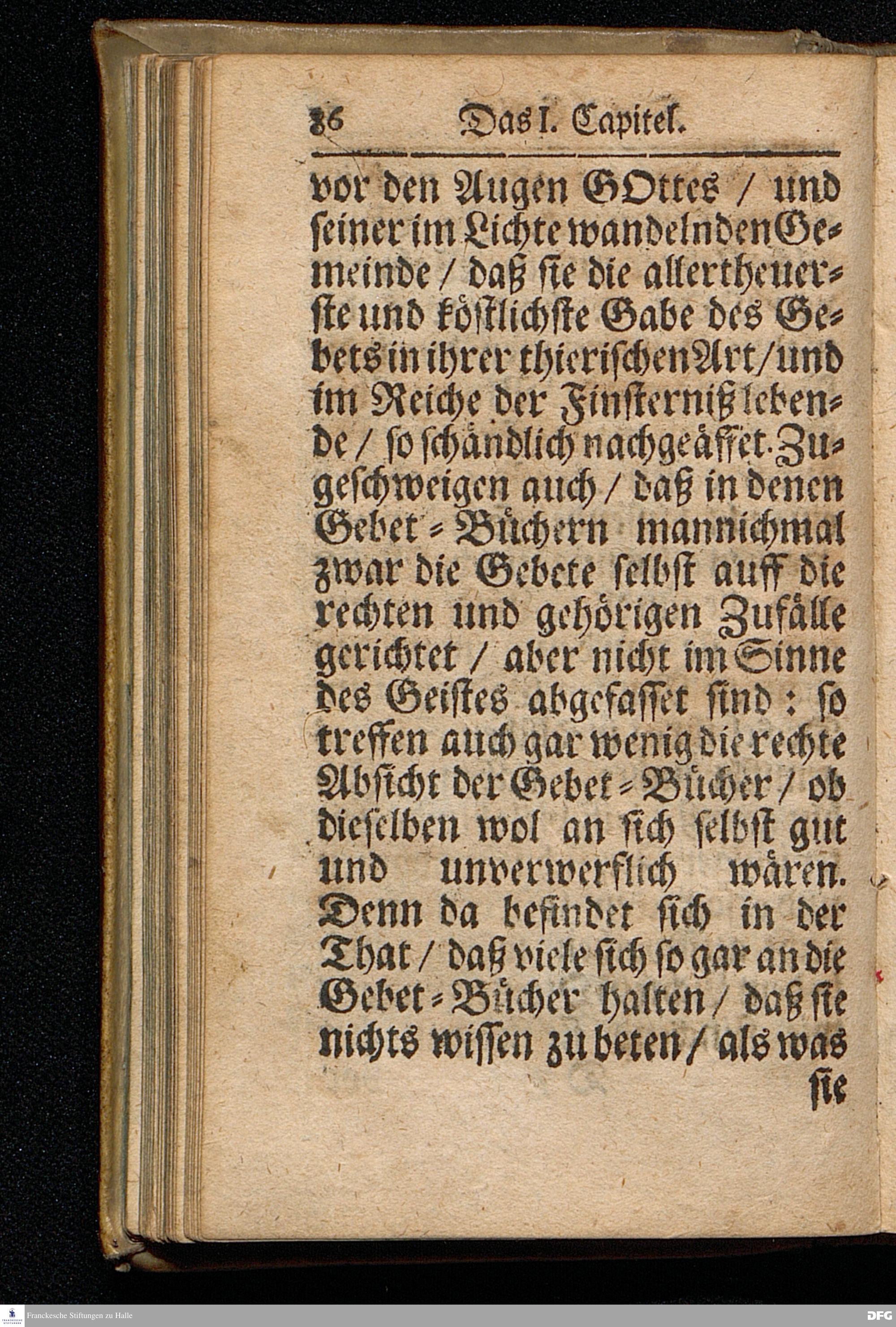 Aug.Herm.Franckens / S.S.Theol.P.Ord.& Past.Glauch. Schrifftmäßige Anweisung Recht und GOTT wohlgefällig Zu Beten / Nebst Einer Anfrage An die Hochlöbl.Theol.Facult. Zu KIEL Und deren RESPONSO, Die Gewißheit und Versicherung der Erhörung des Gebets betreffend. Andere EDITION. CUM PRIVILEGIO. HALLE /Gedruckt und verlegt im Wäysen=Hause. 1703.
