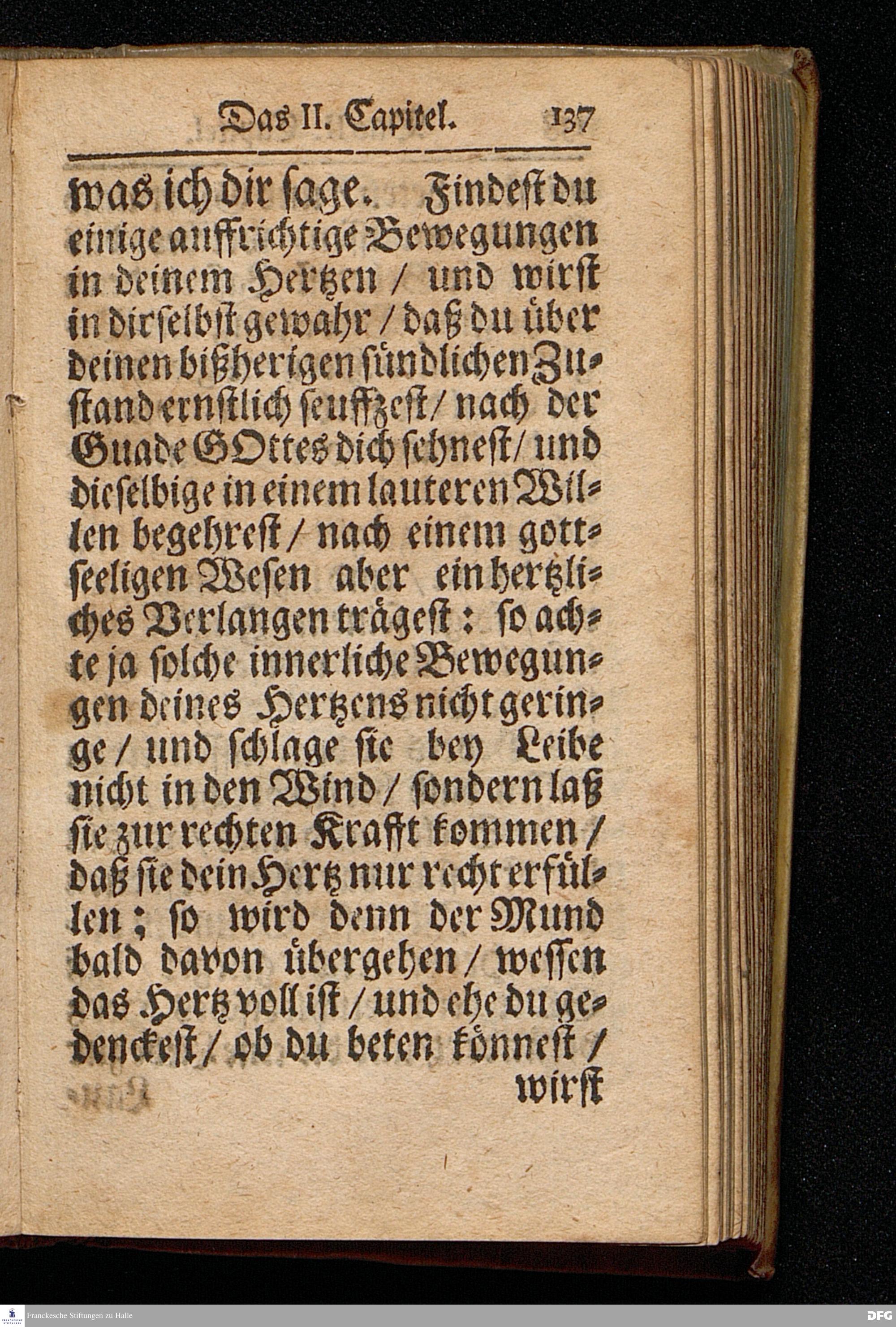 Aug.Herm.Franckens / S.S.Theol.P.Ord.& Past.Glauch. Schrifftmäßige Anweisung Recht und GOTT wohlgefällig Zu Beten / Nebst Einer Anfrage An die Hochlöbl.Theol.Facult. Zu KIEL Und deren RESPONSO, Die Gewißheit und Versicherung der Erhörung des Gebets betreffend. Andere EDITION. CUM PRIVILEGIO. HALLE /Gedruckt und verlegt im Wäysen=Hause. 1703.