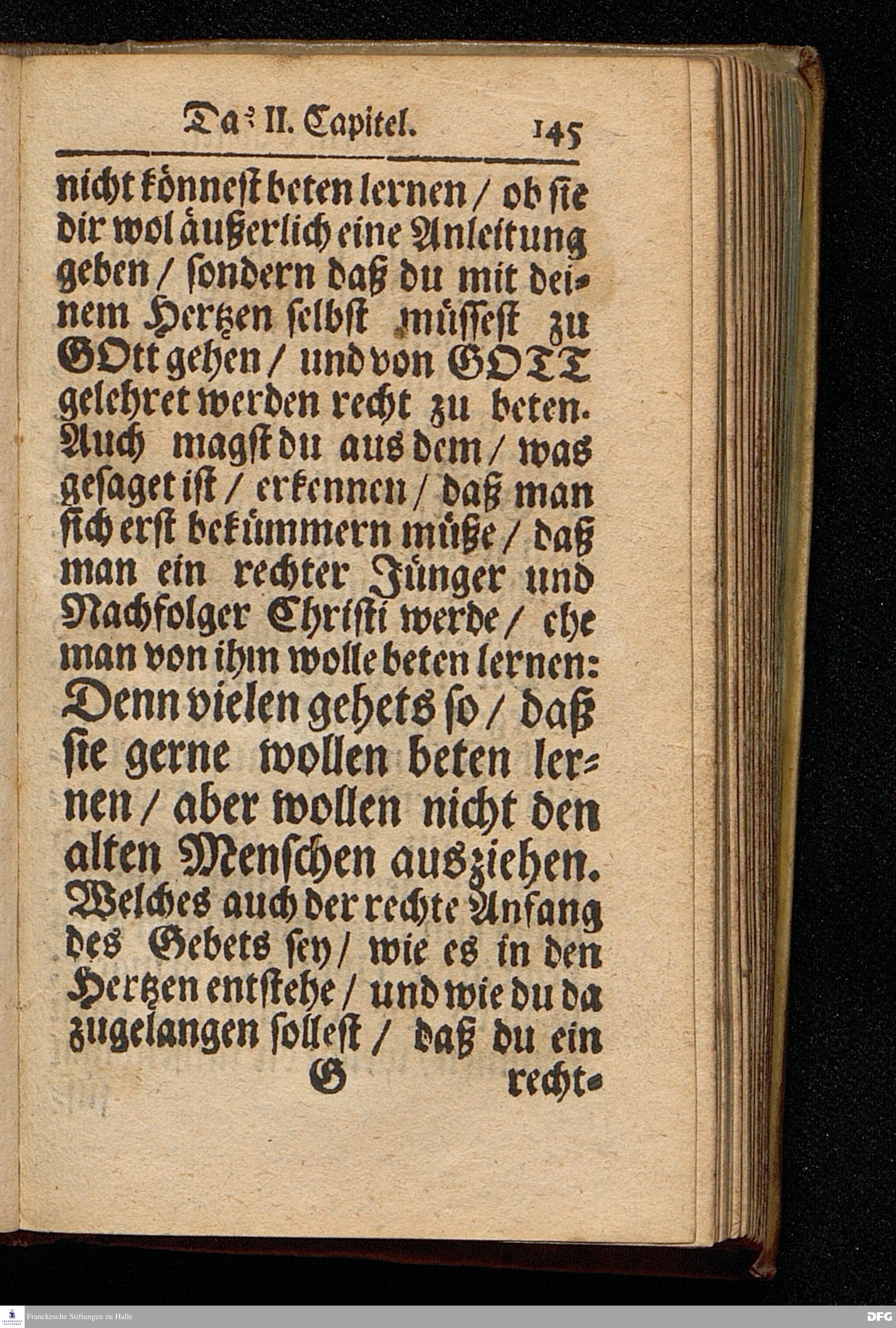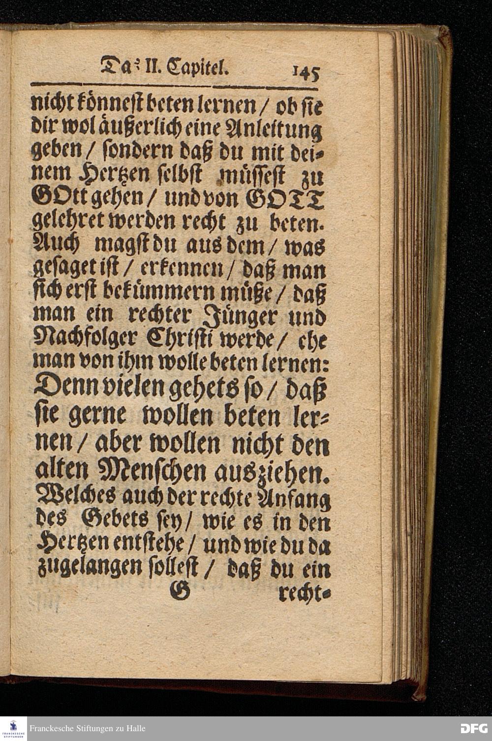 Aug.Herm.Franckens / S.S.Theol.P.Ord.& Past.Glauch. Schrifftmäßige Anweisung Recht und GOTT wohlgefällig Zu Beten / Nebst Einer Anfrage An die Hochlöbl.Theol.Facult. Zu KIEL Und deren RESPONSO, Die Gewißheit und Versicherung der Erhörung des Gebets betreffend. Andere EDITION. CUM PRIVILEGIO. HALLE /Gedruckt und verlegt im Wäysen=Hause. 1703.