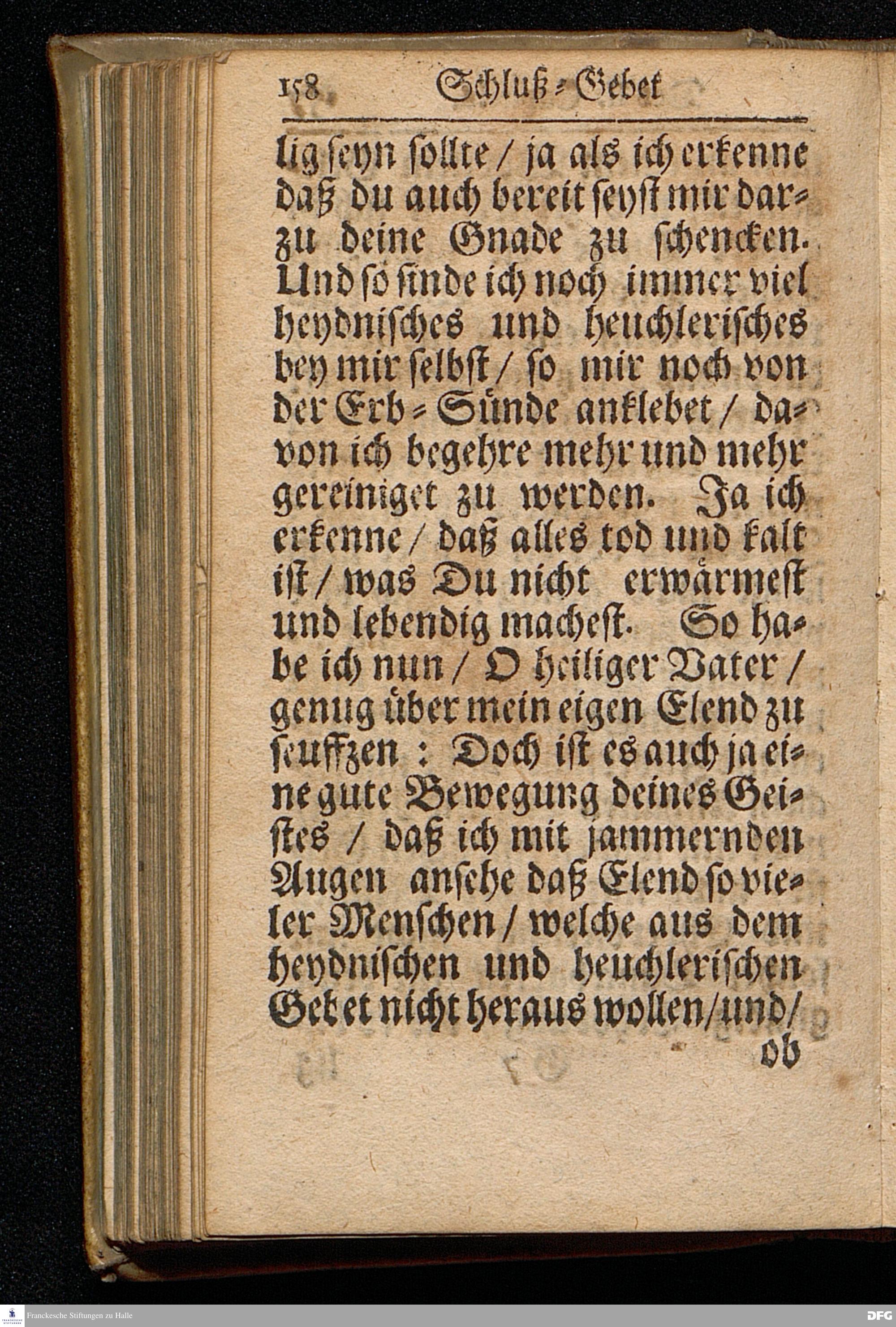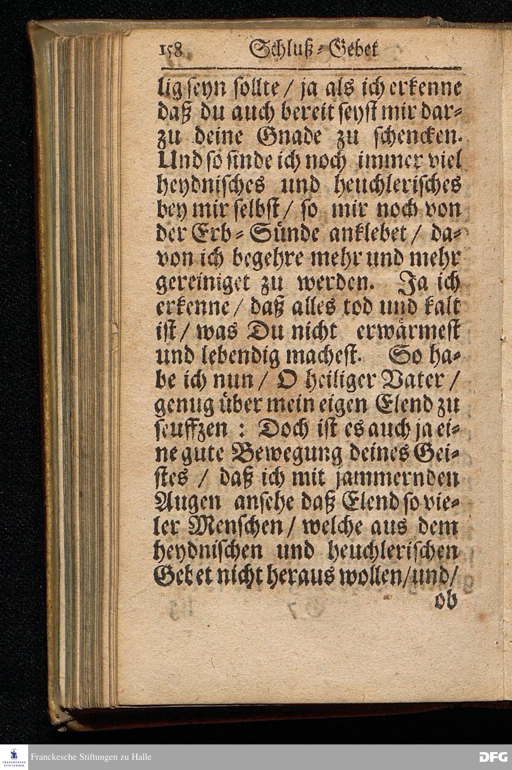 Aug.Herm.Franckens / S.S.Theol.P.Ord.& Past.Glauch. Schrifftmäßige Anweisung Recht und GOTT wohlgefällig Zu Beten / Nebst Einer Anfrage An die Hochlöbl.Theol.Facult. Zu KIEL Und deren RESPONSO, Die Gewißheit und Versicherung der Erhörung des Gebets betreffend. Andere EDITION. CUM PRIVILEGIO. HALLE /Gedruckt und verlegt im Wäysen=Hause. 1703.