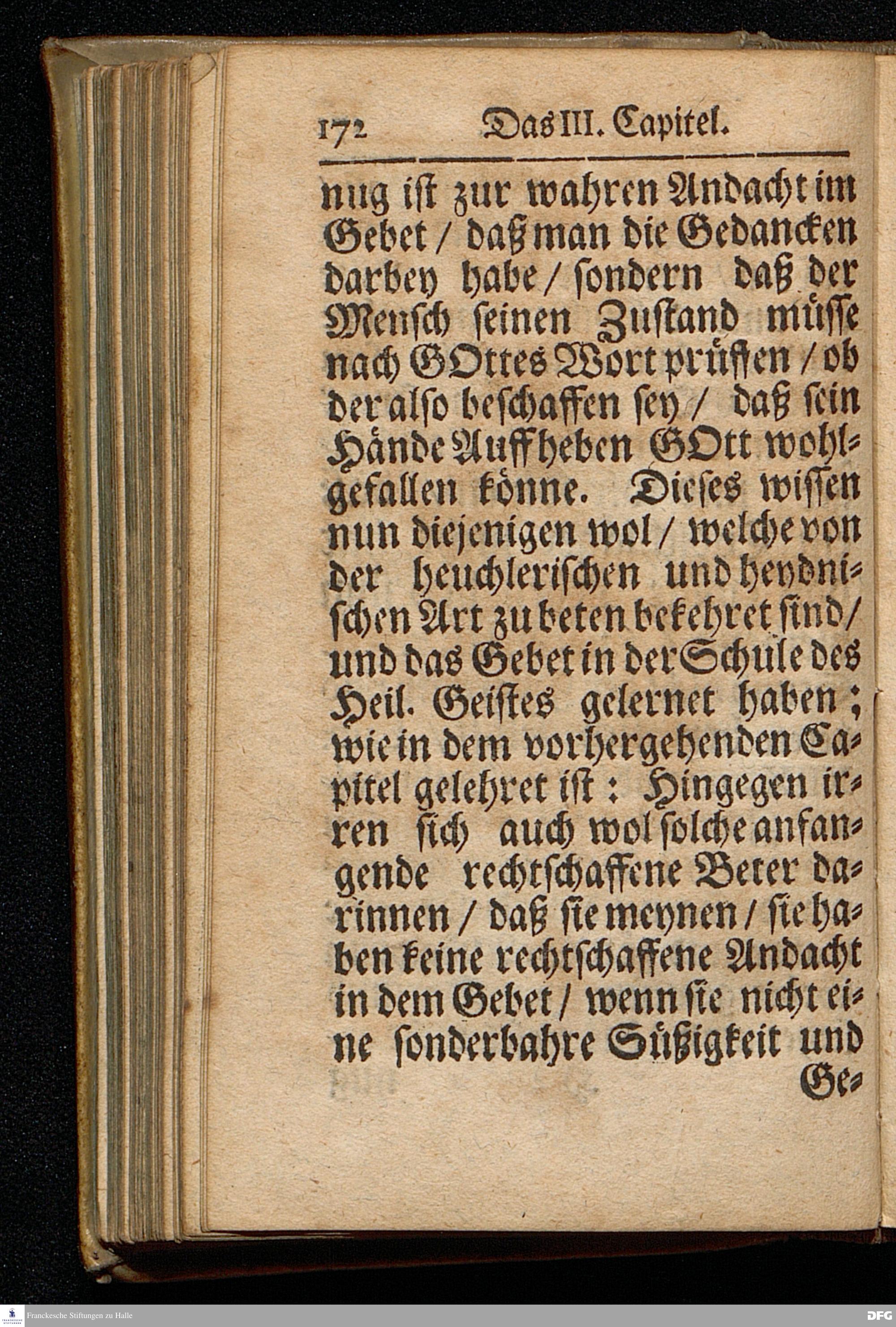 Aug.Herm.Franckens / S.S.Theol.P.Ord.& Past.Glauch. Schrifftmäßige Anweisung Recht und GOTT wohlgefällig Zu Beten / Nebst Einer Anfrage An die Hochlöbl.Theol.Facult. Zu KIEL Und deren RESPONSO, Die Gewißheit und Versicherung der Erhörung des Gebets betreffend. Andere EDITION. CUM PRIVILEGIO. HALLE /Gedruckt und verlegt im Wäysen=Hause. 1703.