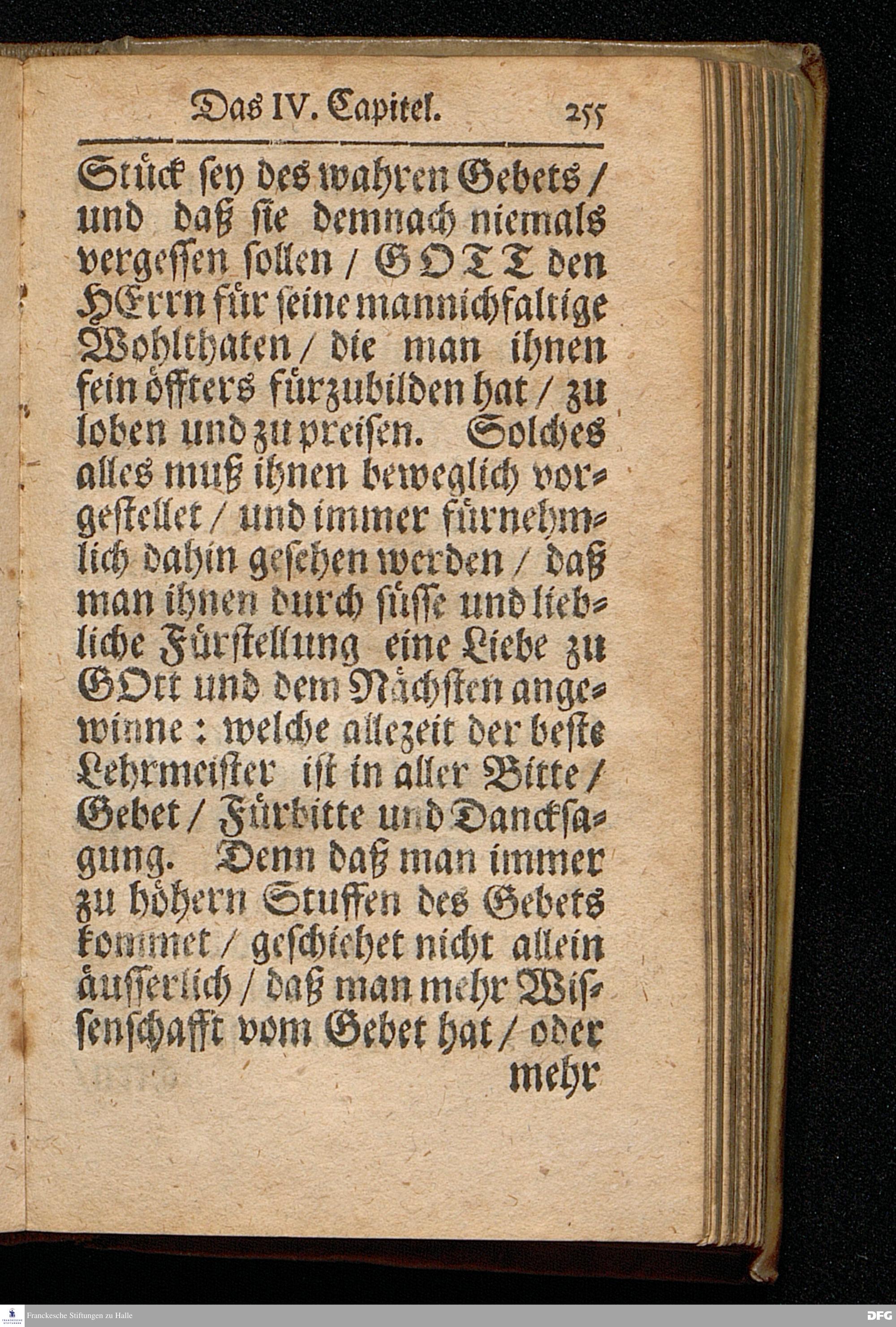 Aug.Herm.Franckens / S.S.Theol.P.Ord.& Past.Glauch. Schrifftmäßige Anweisung Recht und GOTT wohlgefällig Zu Beten / Nebst Einer Anfrage An die Hochlöbl.Theol.Facult. Zu KIEL Und deren RESPONSO, Die Gewißheit und Versicherung der Erhörung des Gebets betreffend. Andere EDITION. CUM PRIVILEGIO. HALLE /Gedruckt und verlegt im Wäysen=Hause. 1703.