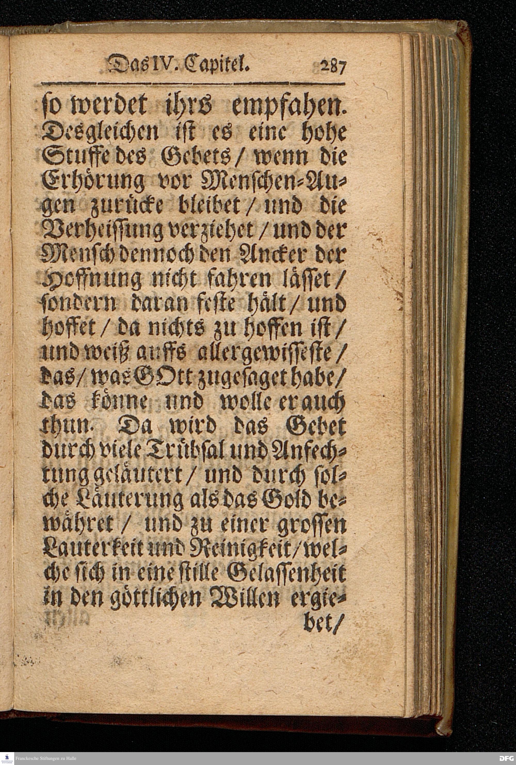 Aug.Herm.Franckens / S.S.Theol.P.Ord.& Past.Glauch. Schrifftmäßige Anweisung Recht und GOTT wohlgefällig Zu Beten / Nebst Einer Anfrage An die Hochlöbl.Theol.Facult. Zu KIEL Und deren RESPONSO, Die Gewißheit und Versicherung der Erhörung des Gebets betreffend. Andere EDITION. CUM PRIVILEGIO. HALLE /Gedruckt und verlegt im Wäysen=Hause. 1703.