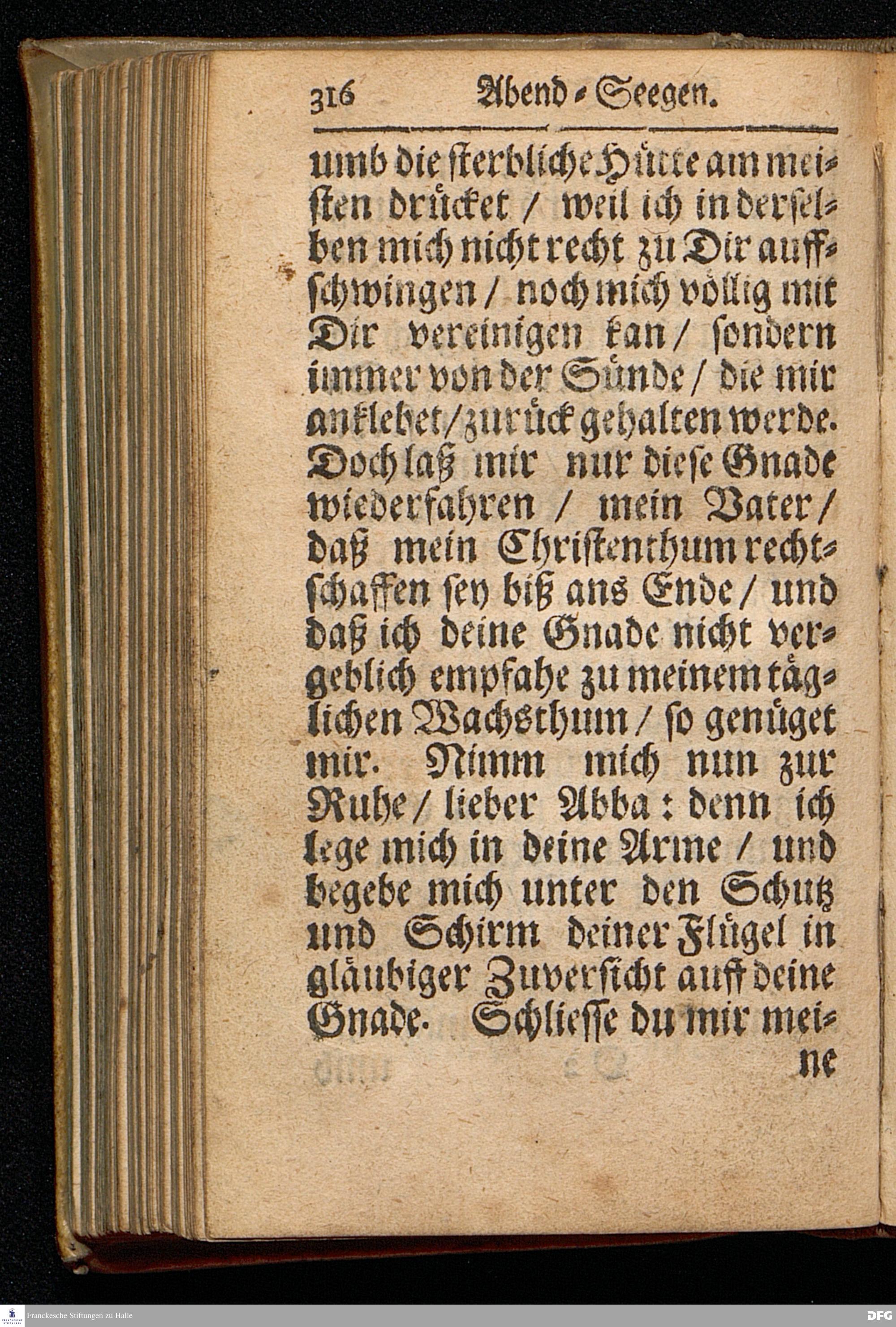 Aug.Herm.Franckens / S.S.Theol.P.Ord.& Past.Glauch. Schrifftmäßige Anweisung Recht und GOTT wohlgefällig Zu Beten / Nebst Einer Anfrage An die Hochlöbl.Theol.Facult. Zu KIEL Und deren RESPONSO, Die Gewißheit und Versicherung der Erhörung des Gebets betreffend. Andere EDITION. CUM PRIVILEGIO. HALLE /Gedruckt und verlegt im Wäysen=Hause. 1703.