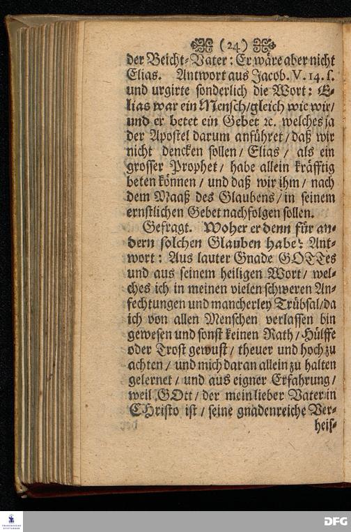 Aug.Herm.Franckens / S.S.Theol.P.Ord.& Past.Glauch. Schrifftmäßige Anweisung Recht und GOTT wohlgefällig Zu Beten / Nebst Einer Anfrage An die Hochlöbl.Theol.Facult. Zu KIEL Und deren RESPONSO, Die Gewißheit und Versicherung der Erhörung des Gebets betreffend. Andere EDITION. CUM PRIVILEGIO. HALLE /Gedruckt und verlegt im Wäysen=Hause. 1703.