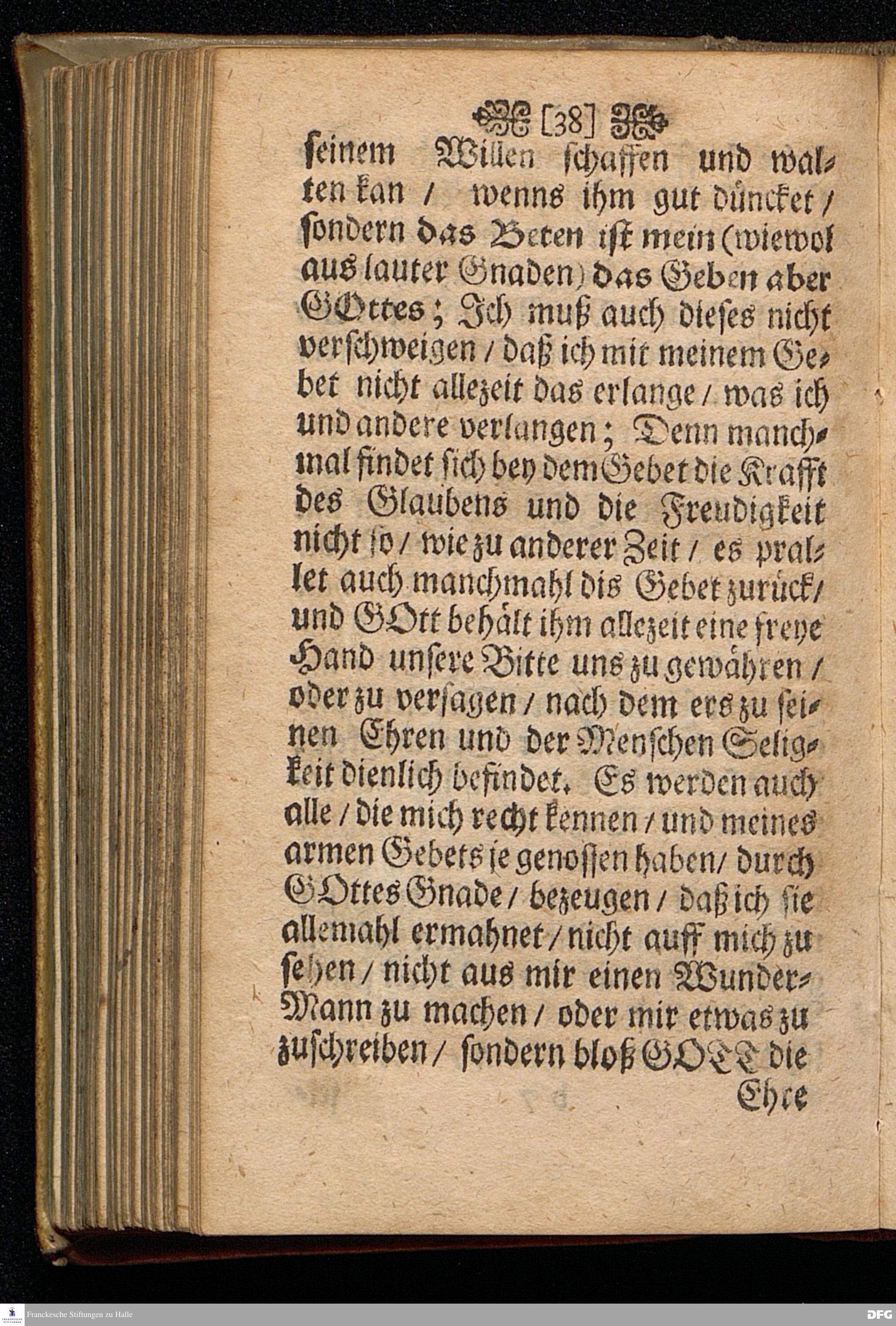 Aug.Herm.Franckens / S.S.Theol.P.Ord.& Past.Glauch. Schrifftmäßige Anweisung Recht und GOTT wohlgefällig Zu Beten / Nebst Einer Anfrage An die Hochlöbl.Theol.Facult. Zu KIEL Und deren RESPONSO, Die Gewißheit und Versicherung der Erhörung des Gebets betreffend. Andere EDITION. CUM PRIVILEGIO. HALLE /Gedruckt und verlegt im Wäysen=Hause. 1703.