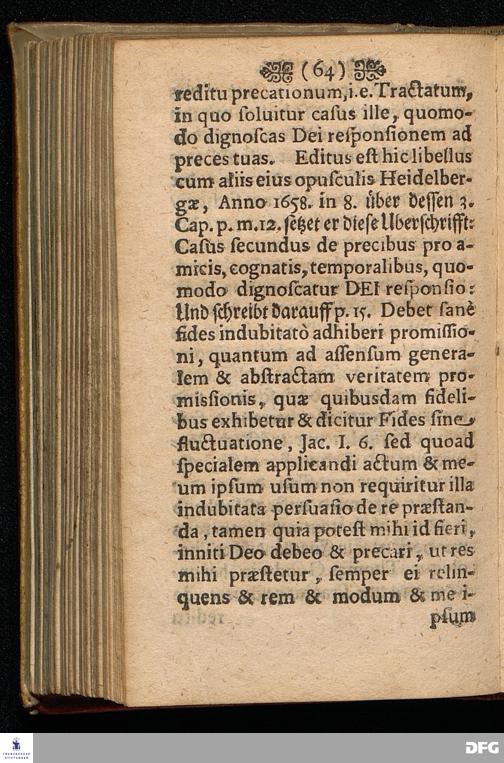 Aug.Herm.Franckens / S.S.Theol.P.Ord.& Past.Glauch. Schrifftmäßige Anweisung Recht und GOTT wohlgefällig Zu Beten / Nebst Einer Anfrage An die Hochlöbl.Theol.Facult. Zu KIEL Und deren RESPONSO, Die Gewißheit und Versicherung der Erhörung des Gebets betreffend. Andere EDITION. CUM PRIVILEGIO. HALLE /Gedruckt und verlegt im Wäysen=Hause. 1703.