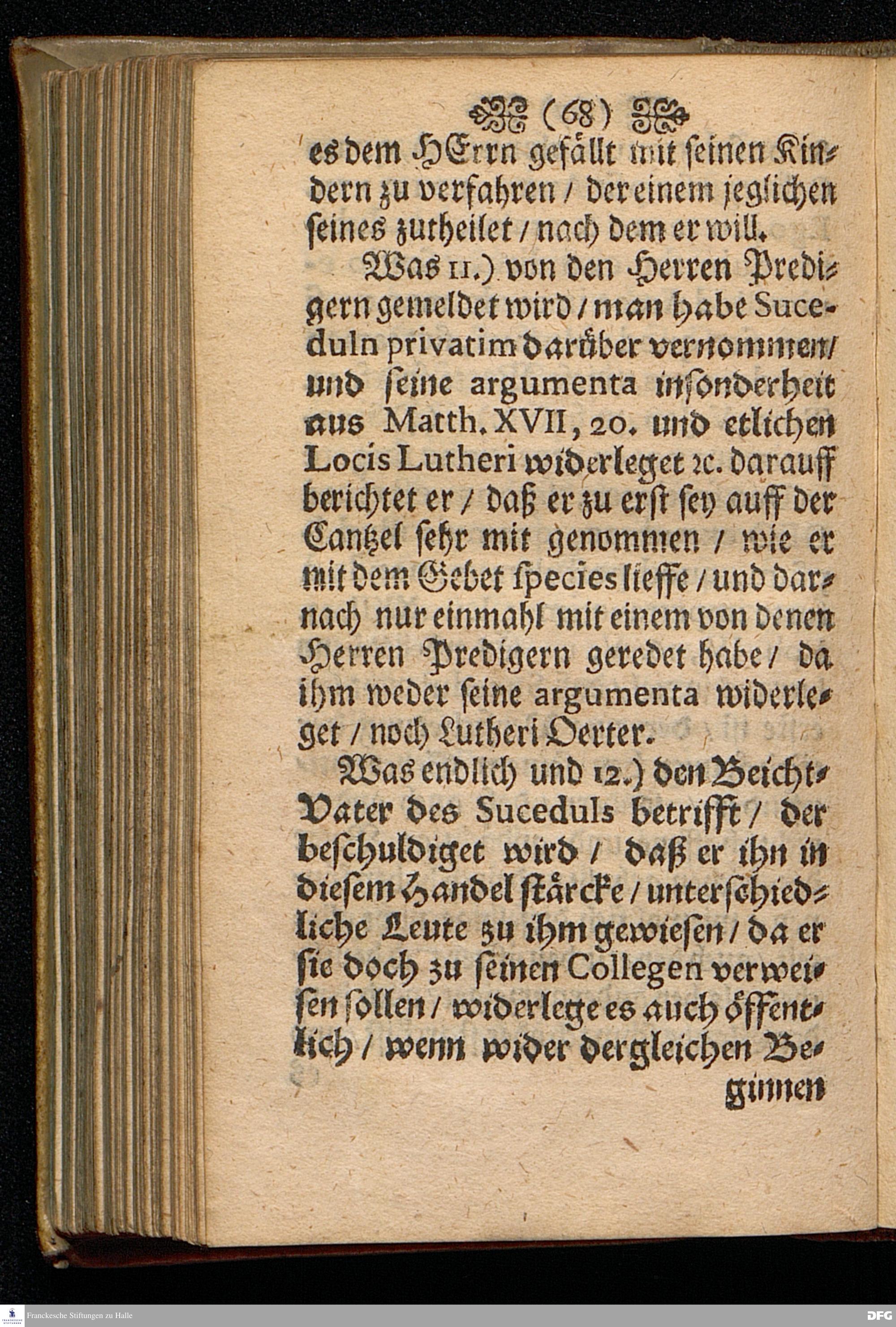 Aug.Herm.Franckens / S.S.Theol.P.Ord.& Past.Glauch. Schrifftmäßige Anweisung Recht und GOTT wohlgefällig Zu Beten / Nebst Einer Anfrage An die Hochlöbl.Theol.Facult. Zu KIEL Und deren RESPONSO, Die Gewißheit und Versicherung der Erhörung des Gebets betreffend. Andere EDITION. CUM PRIVILEGIO. HALLE /Gedruckt und verlegt im Wäysen=Hause. 1703.