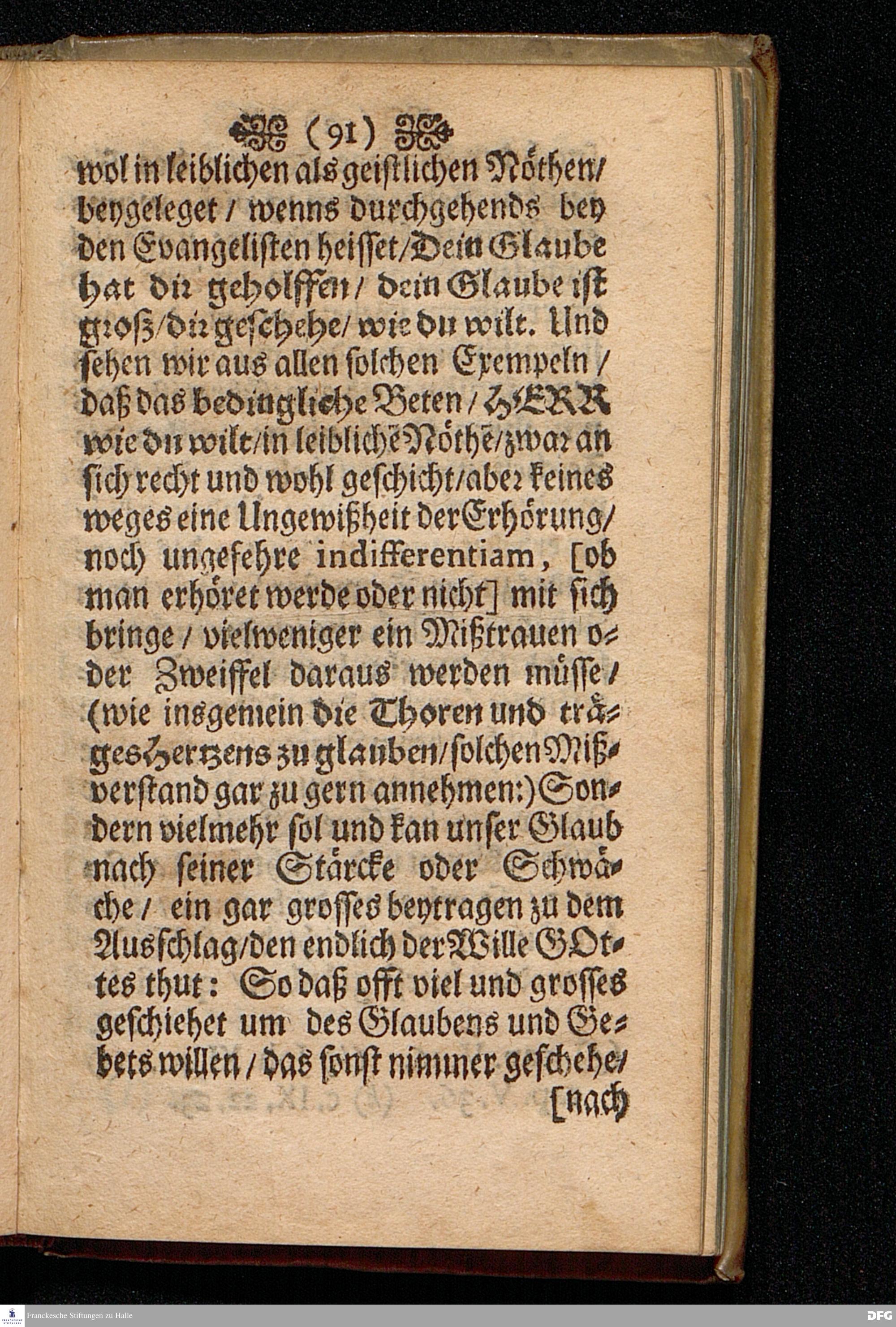 Aug.Herm.Franckens / S.S.Theol.P.Ord.& Past.Glauch. Schrifftmäßige Anweisung Recht und GOTT wohlgefällig Zu Beten / Nebst Einer Anfrage An die Hochlöbl.Theol.Facult. Zu KIEL Und deren RESPONSO, Die Gewißheit und Versicherung der Erhörung des Gebets betreffend. Andere EDITION. CUM PRIVILEGIO. HALLE /Gedruckt und verlegt im Wäysen=Hause. 1703.