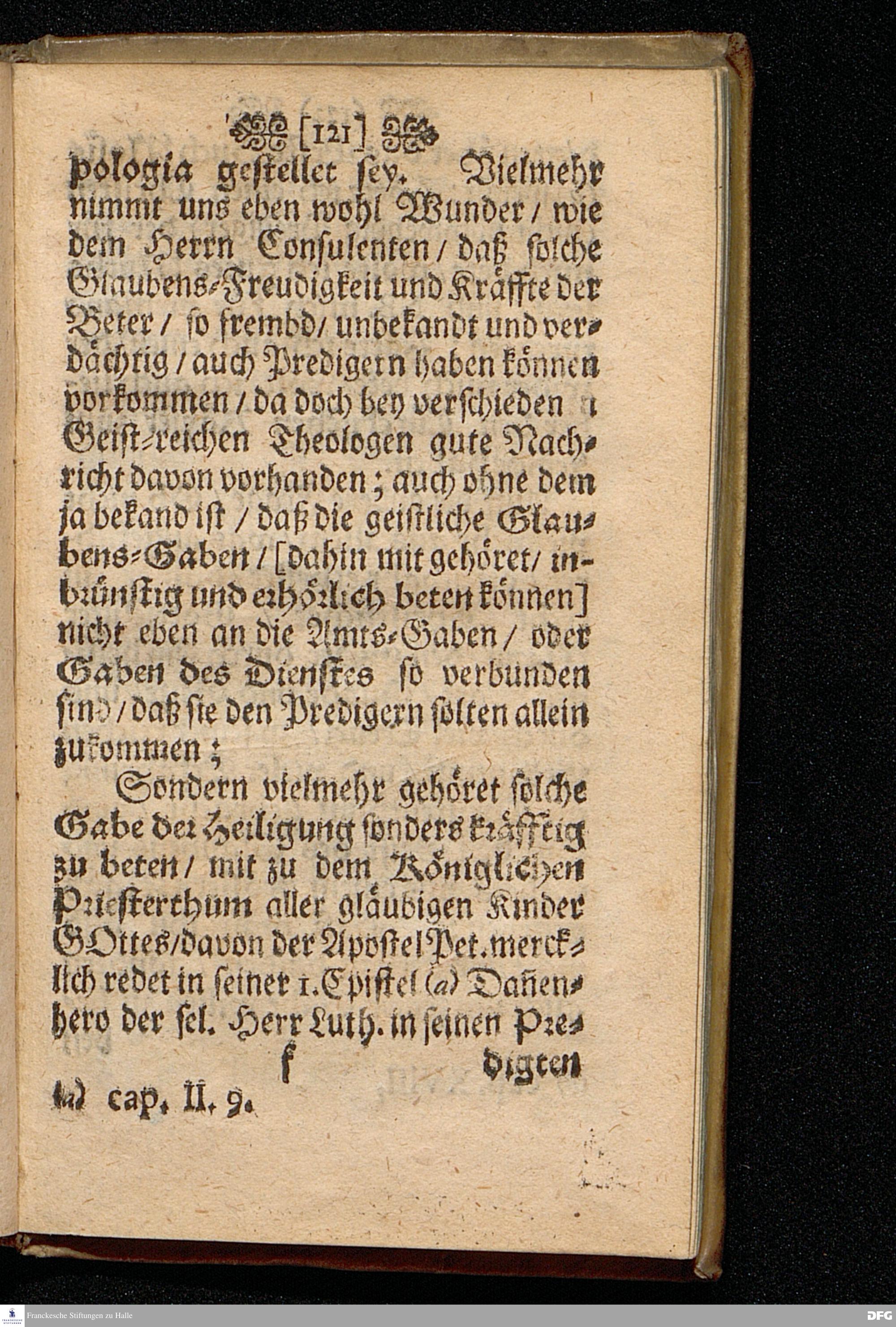 Aug.Herm.Franckens / S.S.Theol.P.Ord.& Past.Glauch. Schrifftmäßige Anweisung Recht und GOTT wohlgefällig Zu Beten / Nebst Einer Anfrage An die Hochlöbl.Theol.Facult. Zu KIEL Und deren RESPONSO, Die Gewißheit und Versicherung der Erhörung des Gebets betreffend. Andere EDITION. CUM PRIVILEGIO. HALLE /Gedruckt und verlegt im Wäysen=Hause. 1703.