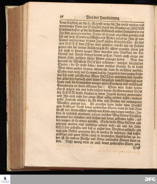 Die PAEDAGOGIE oder Handleitung zu der Verborgenen Weißheit Gottes Fürgestellet aus dem Buch der Weißheit Cap.IX. V.13-19. Bey Beerdigung Eines Adelichen Knaben / Joh.Heinrich von Sommerfeld und Falckenhayn / gebürtig aus Schlesien / den [Lücke] 1701. In der S.Georgen=Kirchen zu Glaucha an Halle von August Hermann Francken / S.Theol.Prof.Ord.& Past. Gedruckt im Waysen=Hause Anno 1702.