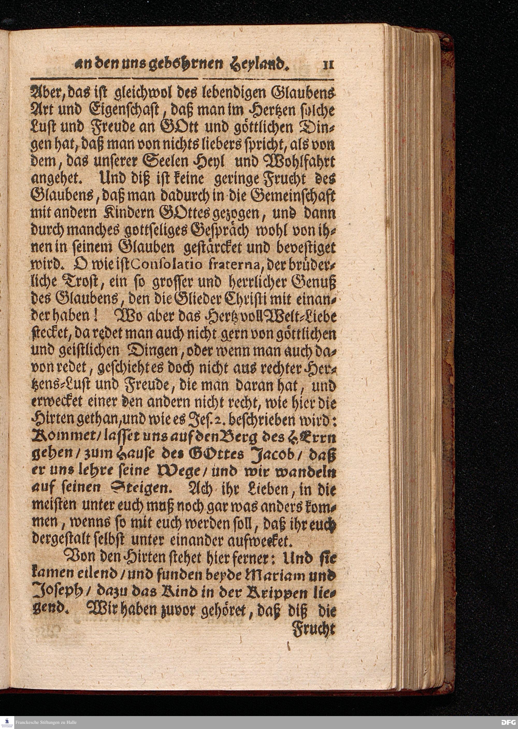Die Frucht und der Genuß des Glaubens an den uns gebohrnen Heyland / Aus dem Evangelischen Text Luc.II, 15--20. Am II.Weyhnachts Feyer=Tage MDCCXVII [vielmehr MDCCXVI]. In der St.Ulrichs=Kirchen in Halle vorgestellet von August Hermann Francken / S.Theol.Prof.& Past.zu S.Ulrich, und des Gymnasii Scholarcha. HALLE, gedruckt im Wäysen=Hause, 1717.