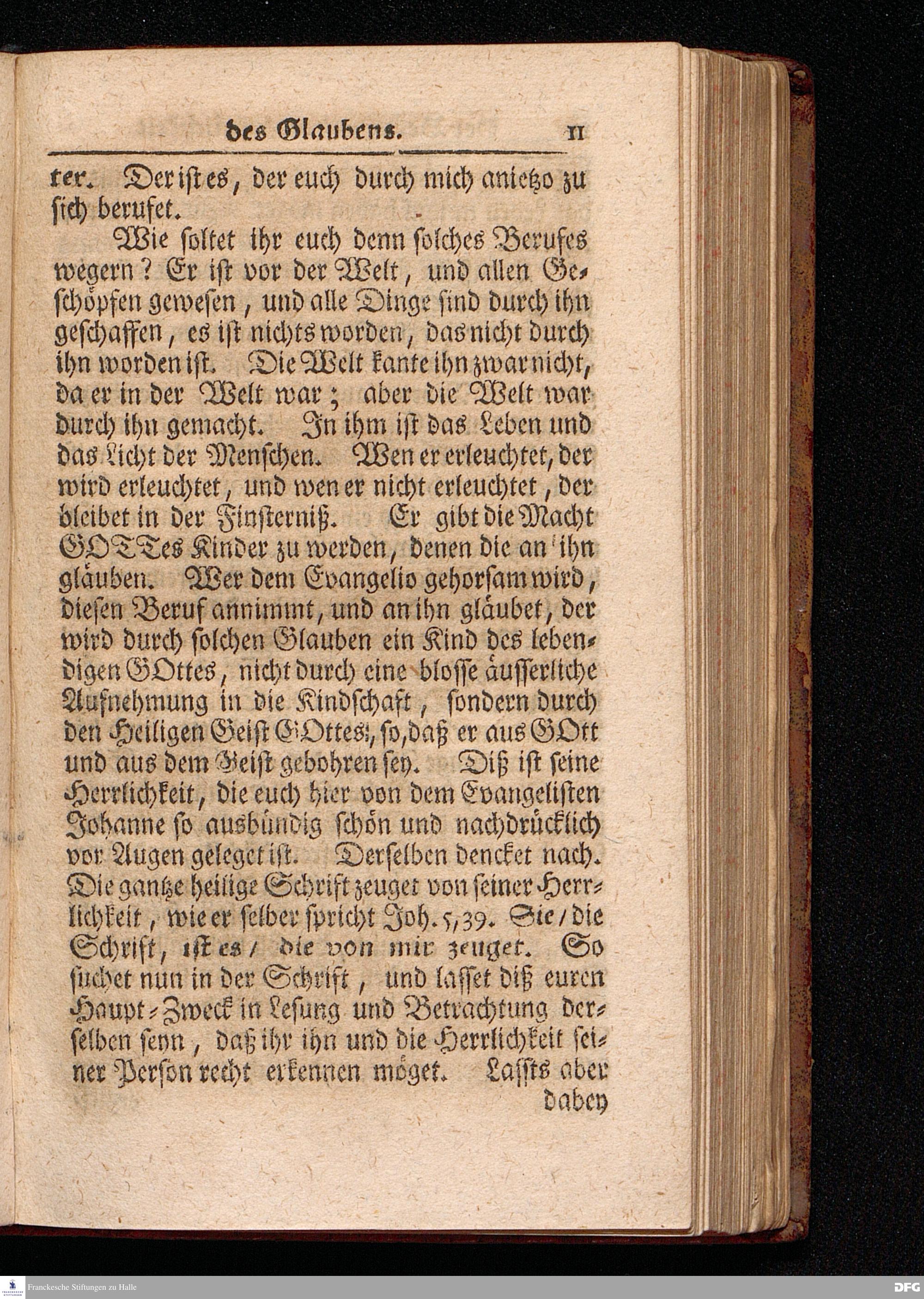 Der Beruf zu der Herrlichkeit des Glaubens / Aus dem Evangelischen Text Joh.I, 1--16. Am III.Weyhnachts=Feyertage MDCCXVII [vielmehr MDCCXVI]. In der Schul=Kirchen in Halle vorgestellet von August Hermann Francken / S.Theol.Prof.& Past. zu S.Ulrich, und des Gymnasii Scholarcha. HALLE, Gedruckt und zu finden im Wäysen=Hause, 1717.
