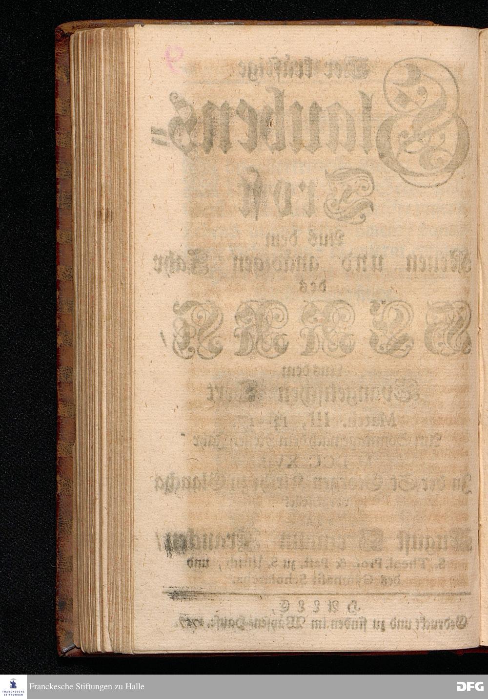 Der kräftige Glaubens=Trost Aus dem Neuen und gnädigen Jahr des HERRN / Aus dem Evangelischen Text Matth.III, 13--17. Am Sonntage nach dem Neuen Jahr MDCCXVII. In der St.Georgen=Kirche zu Glaucha vorgestellet von August Hermann Francken / S.Theol.Prof.& Past.zu S.Ulrich, und des Gymnasii Scholarcha. HALLE, Gedruckt und zu finden im Wäysen=Hause. 1717.