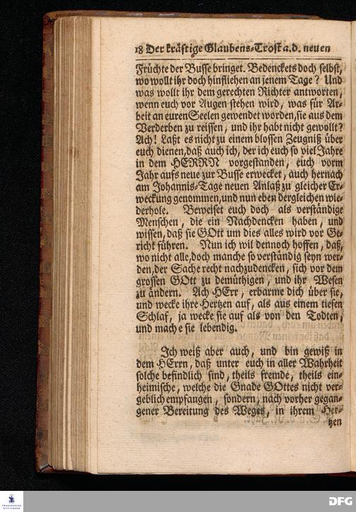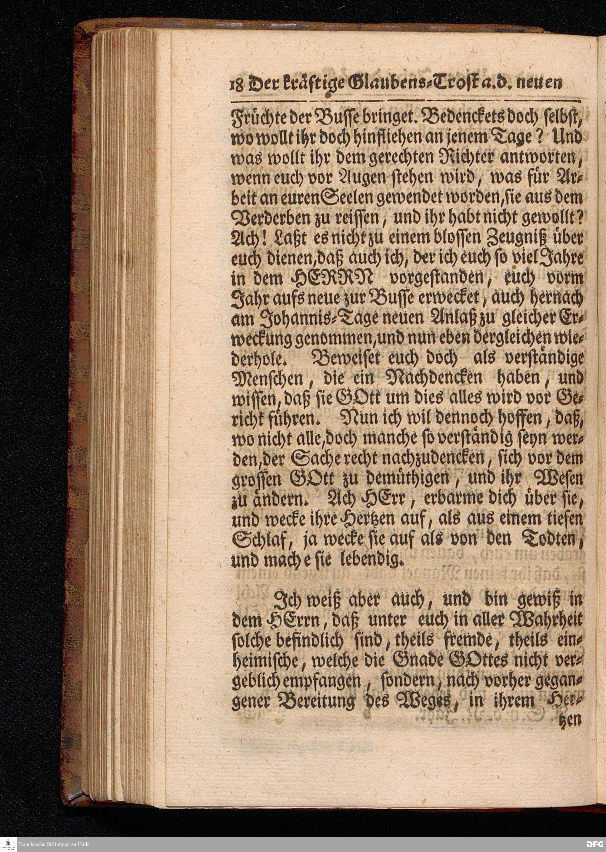 Der kräftige Glaubens=Trost Aus dem Neuen und gnädigen Jahr des HERRN / Aus dem Evangelischen Text Matth.III, 13--17. Am Sonntage nach dem Neuen Jahr MDCCXVII. In der St.Georgen=Kirche zu Glaucha vorgestellet von August Hermann Francken / S.Theol.Prof.& Past.zu S.Ulrich, und des Gymnasii Scholarcha. HALLE, Gedruckt und zu finden im Wäysen=Hause. 1717.
