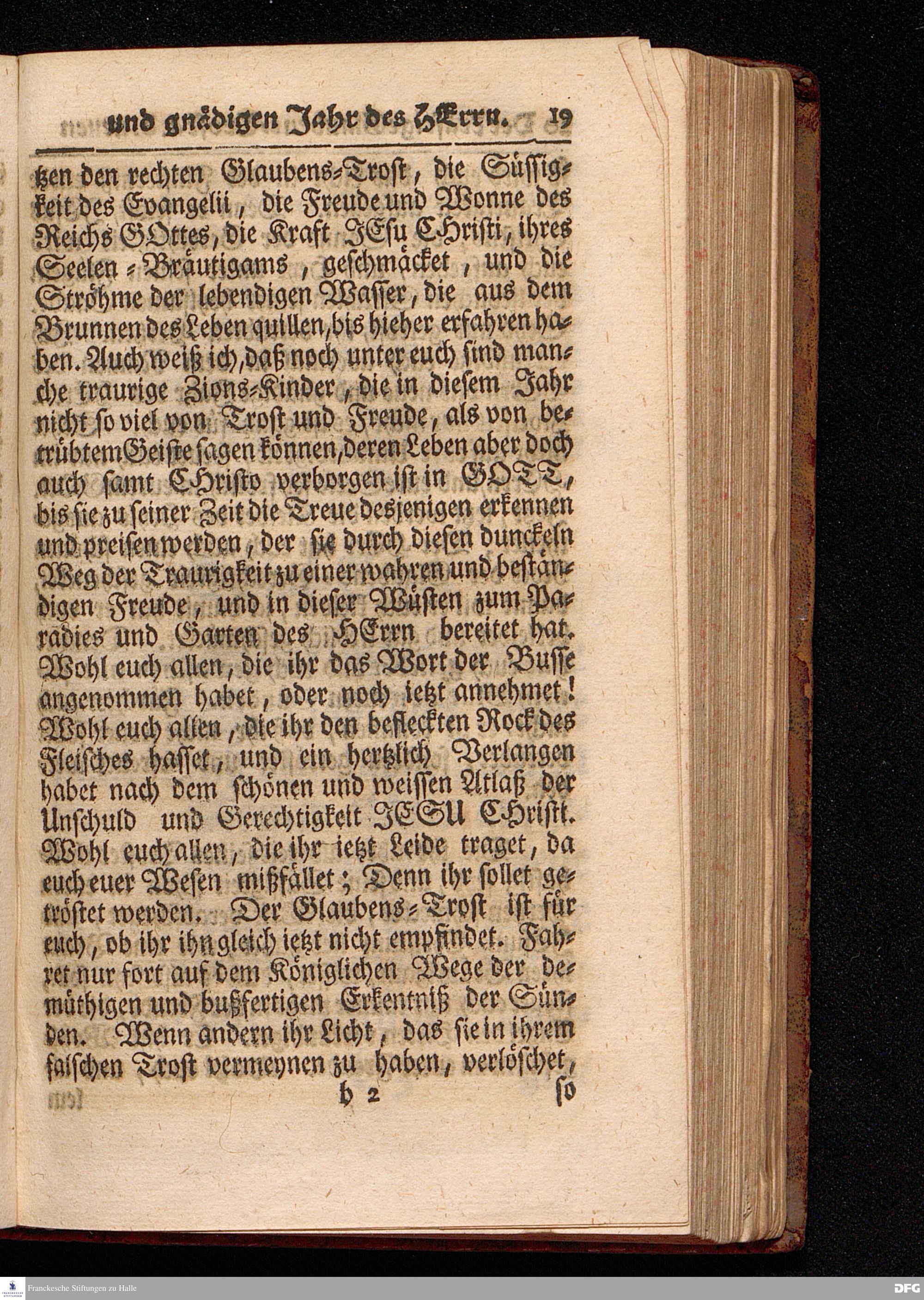 Der kräftige Glaubens=Trost Aus dem Neuen und gnädigen Jahr des HERRN / Aus dem Evangelischen Text Matth.III, 13--17. Am Sonntage nach dem Neuen Jahr MDCCXVII. In der St.Georgen=Kirche zu Glaucha vorgestellet von August Hermann Francken / S.Theol.Prof.& Past.zu S.Ulrich, und des Gymnasii Scholarcha. HALLE, Gedruckt und zu finden im Wäysen=Hause. 1717.