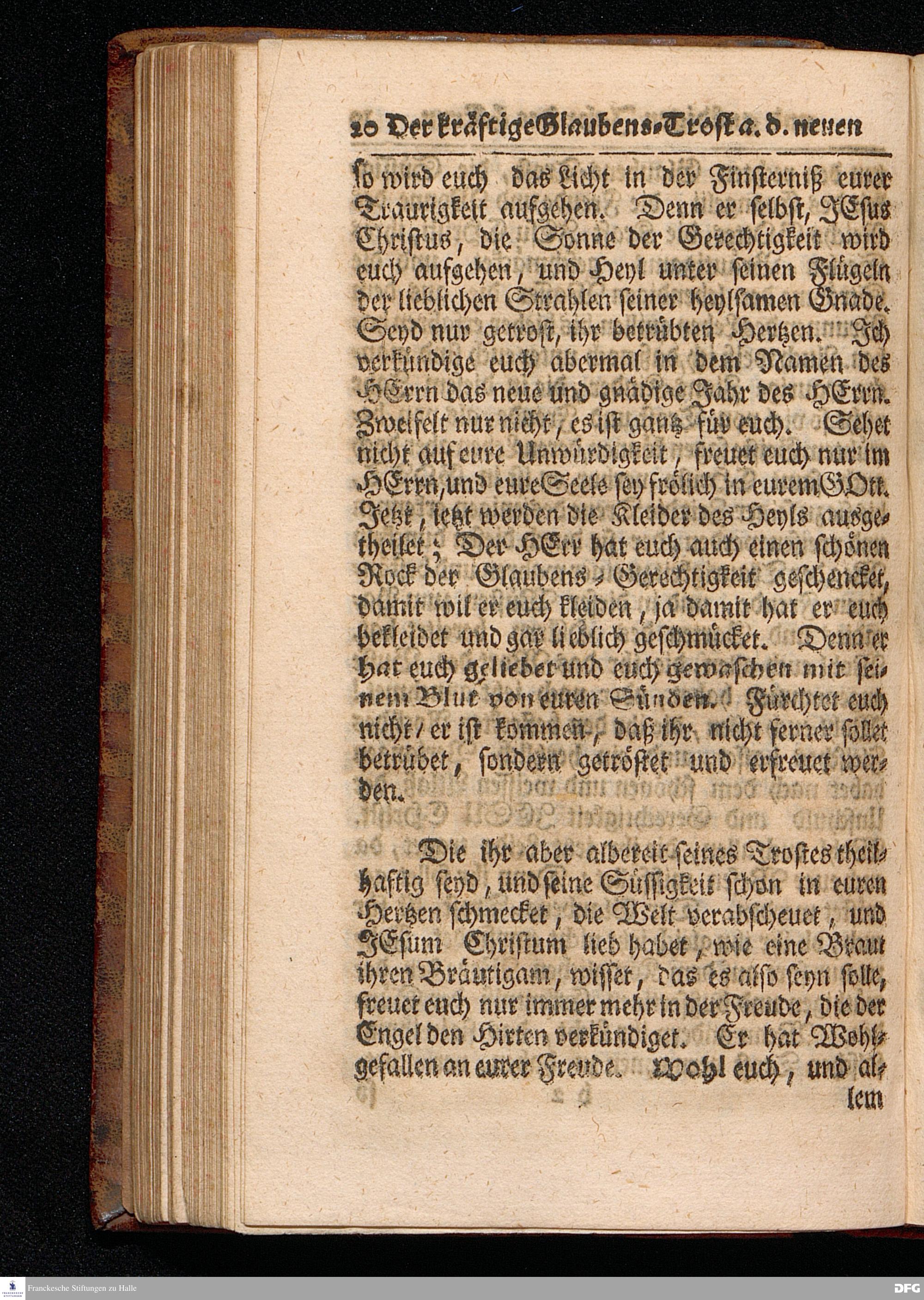 Der kräftige Glaubens=Trost Aus dem Neuen und gnädigen Jahr des HERRN / Aus dem Evangelischen Text Matth.III, 13--17. Am Sonntage nach dem Neuen Jahr MDCCXVII. In der St.Georgen=Kirche zu Glaucha vorgestellet von August Hermann Francken / S.Theol.Prof.& Past.zu S.Ulrich, und des Gymnasii Scholarcha. HALLE, Gedruckt und zu finden im Wäysen=Hause. 1717.