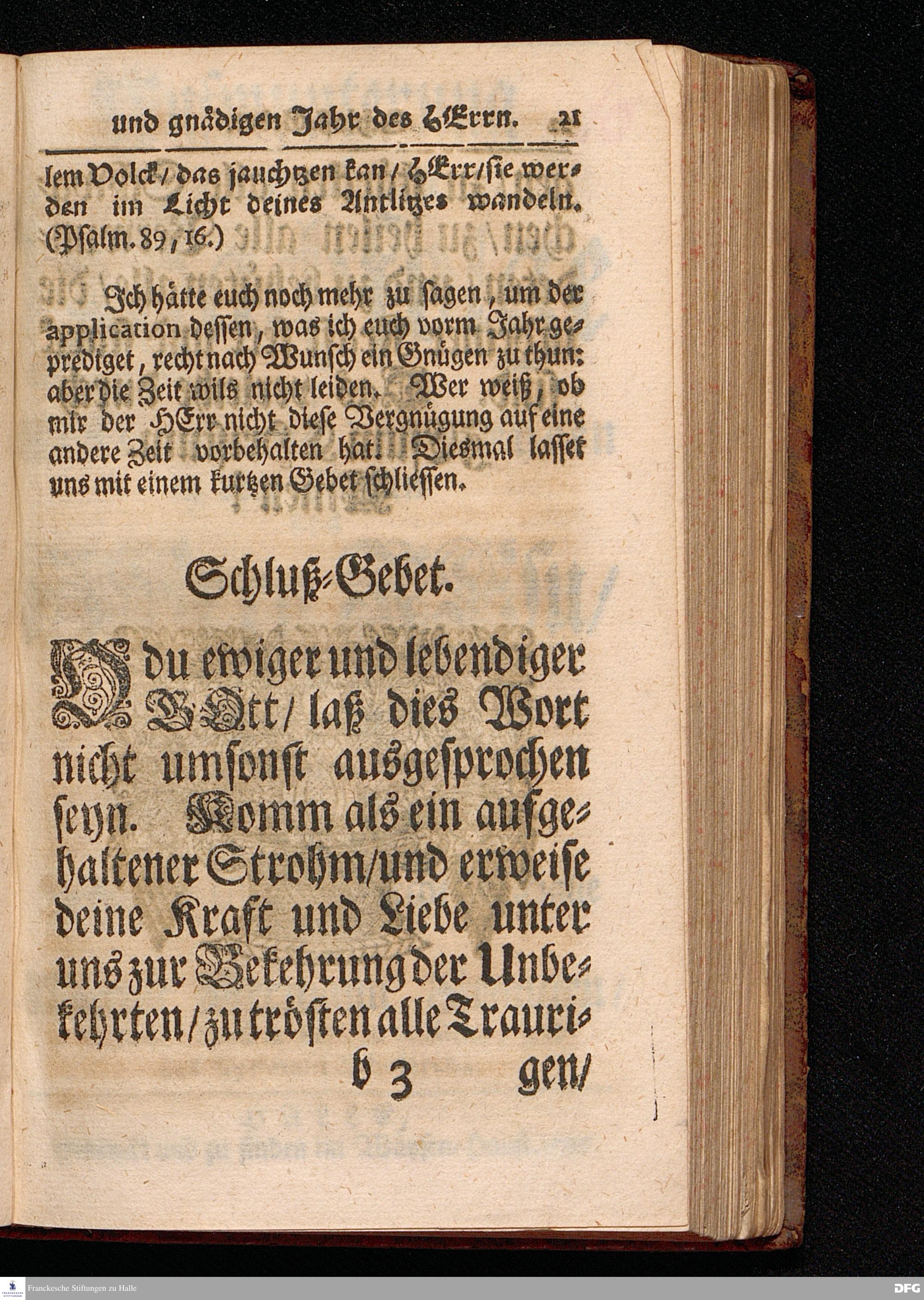 Der kräftige Glaubens=Trost Aus dem Neuen und gnädigen Jahr des HERRN / Aus dem Evangelischen Text Matth.III, 13--17. Am Sonntage nach dem Neuen Jahr MDCCXVII. In der St.Georgen=Kirche zu Glaucha vorgestellet von August Hermann Francken / S.Theol.Prof.& Past.zu S.Ulrich, und des Gymnasii Scholarcha. HALLE, Gedruckt und zu finden im Wäysen=Hause. 1717.