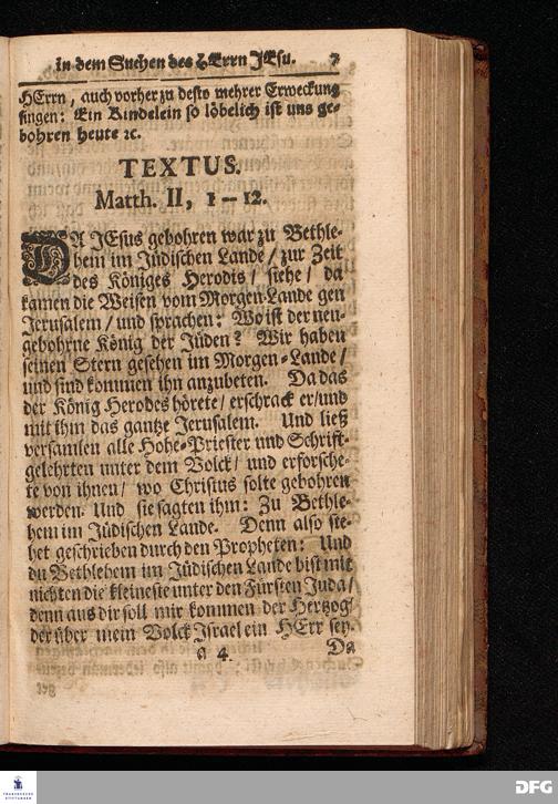 Aufmunterung zur freudigen Nachfolge der Erstlinge aus den Heyden in dem Suchen des HErrn JEsu / Aus dem Evangelischen Text Matth.II, 1--12. Am Fest der Heil.Drey Könige MDCCXVII. In der St.Ulrichs=Kirchen in Halle vorgestellet von August Hermann Francken / S.Theol.Prof.& Past. zu S.Ulrich, und des Gymnasii Scholarcha. HALLE, Gedruckt und zu finden im Wäysen=Hause. 1717.