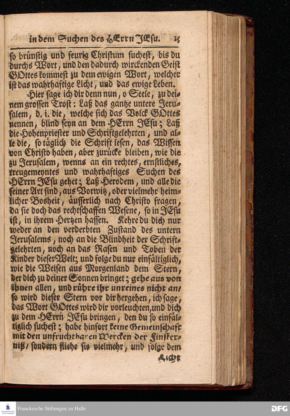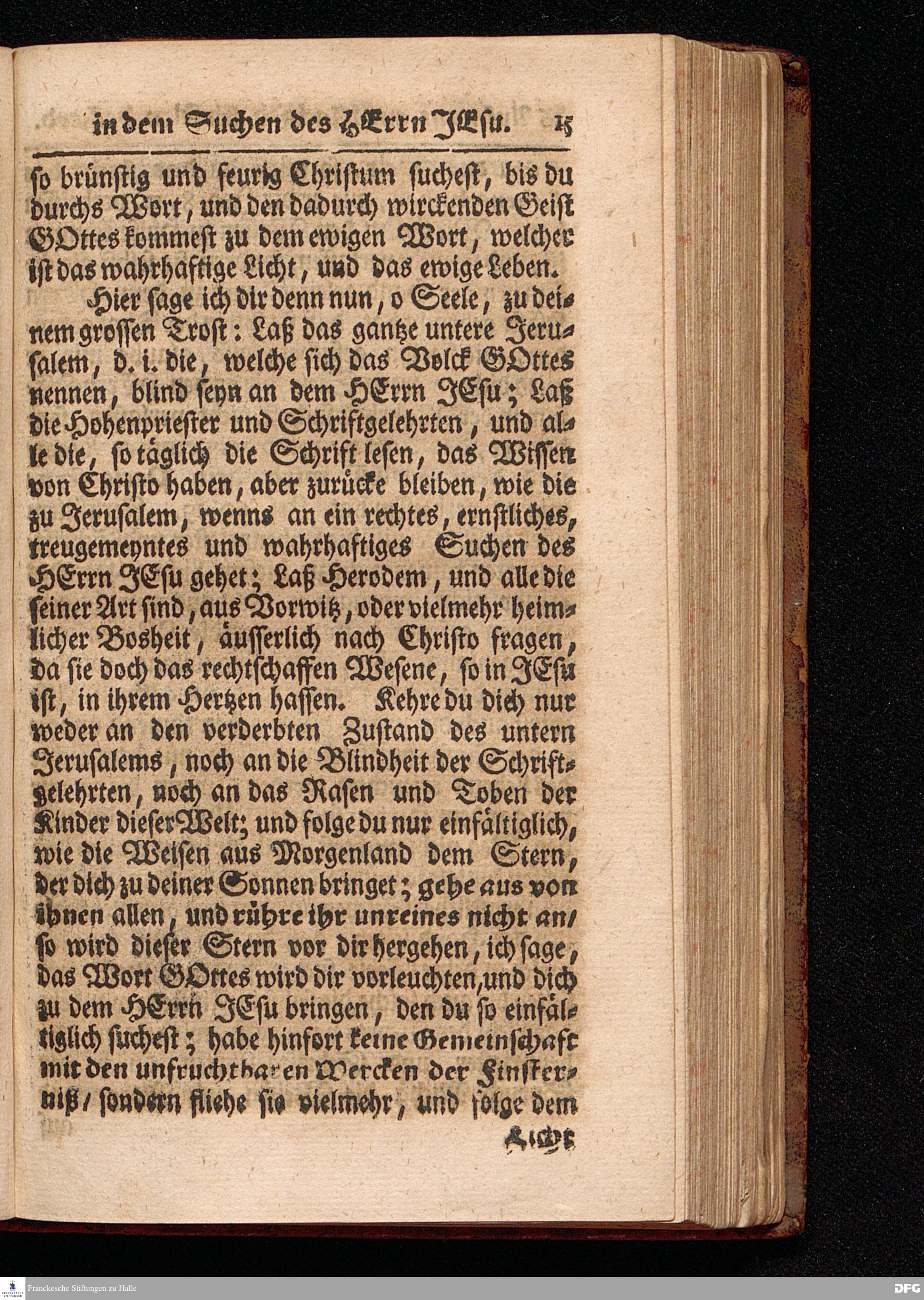 Aufmunterung zur freudigen Nachfolge der Erstlinge aus den Heyden in dem Suchen des HErrn JEsu / Aus dem Evangelischen Text Matth.II, 1--12. Am Fest der Heil.Drey Könige MDCCXVII. In der St.Ulrichs=Kirchen in Halle vorgestellet von August Hermann Francken / S.Theol.Prof.& Past. zu S.Ulrich, und des Gymnasii Scholarcha. HALLE, Gedruckt und zu finden im Wäysen=Hause. 1717.
