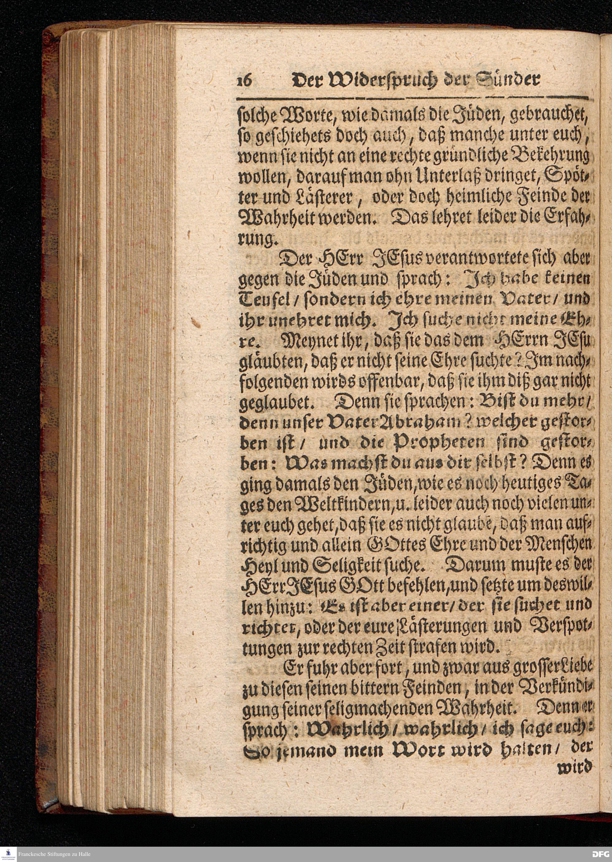 Der Widerspruch der Sünder gegen CHristum / Als er ihnen die Freyheit seiner Gläubigen von der Sünde und vom Tode verkündigte / Aus dem Evangelischen Text Ioh.VIII, 46--59. Am Sonntage Judica MDCCXVII. In der St.Ulrichs=Kirchen in Halle vorgestellet von August Hermann Francken / S.Theol.Prof.& Past.zu S.Ulrich, und des Gymnasii Scholarcha. HALLE, Gedruckt und zu finden im Waysen=Hause, 1717.