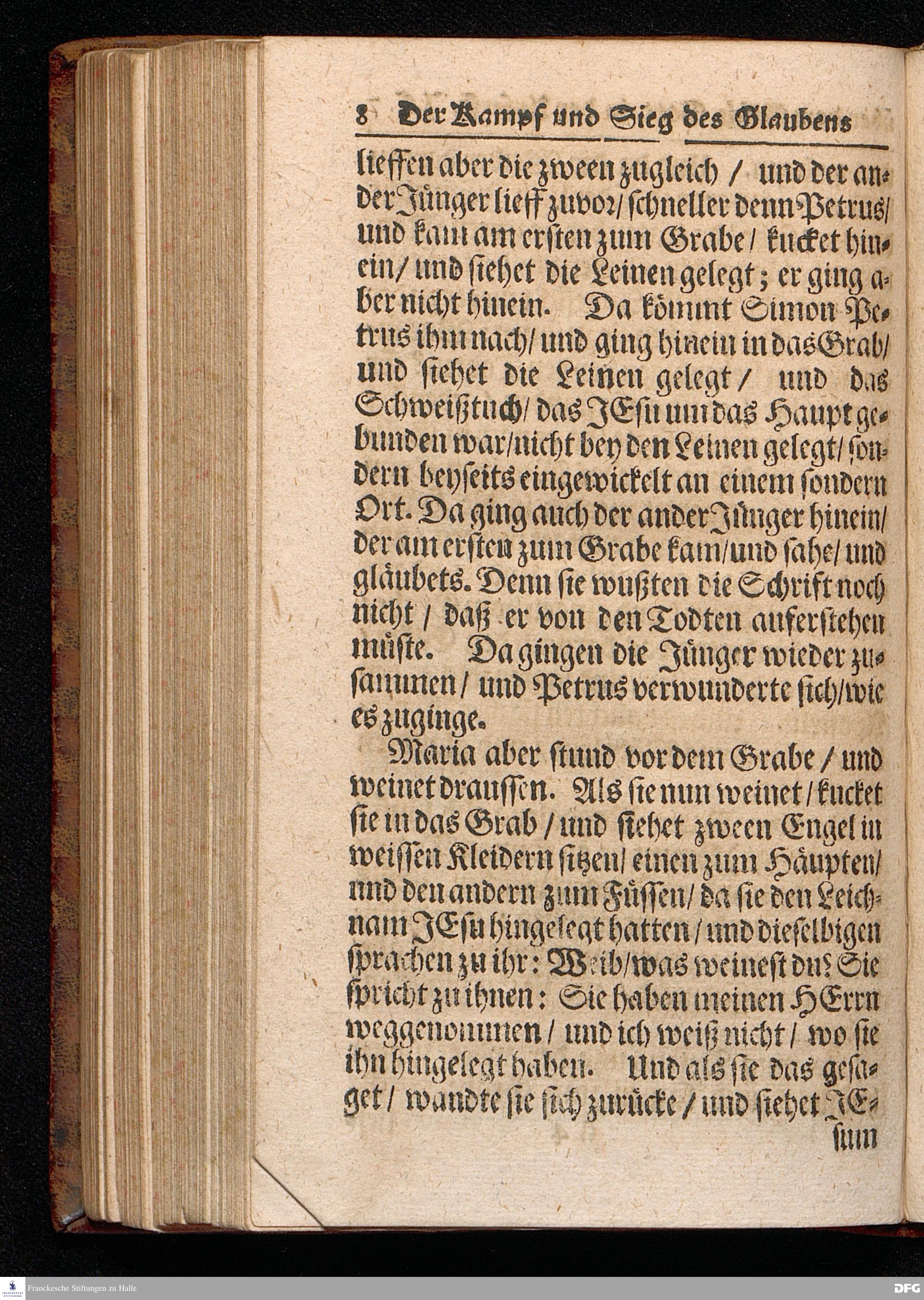 Der Kampf und Sieg des Glaubens Uber dem Geschenck GOttes in der Auferstehung JESU CHRISTI / Aus dem Anfang der Historie der Auferstehung JESU CHRISTI nach allen 4.Evangelisten Am Ersten Oster=Feyertage MDCCXVII. In der St.Ulrichs=Kirchen in Halle vorgestellet von August Hermann Francken / S.Theol.Prof.& Past.zu S.Ulrich, und des Gymnasii Scholarcha. HALLE, Gedruckt und zu finden im Wäysen=Hause, 1717.