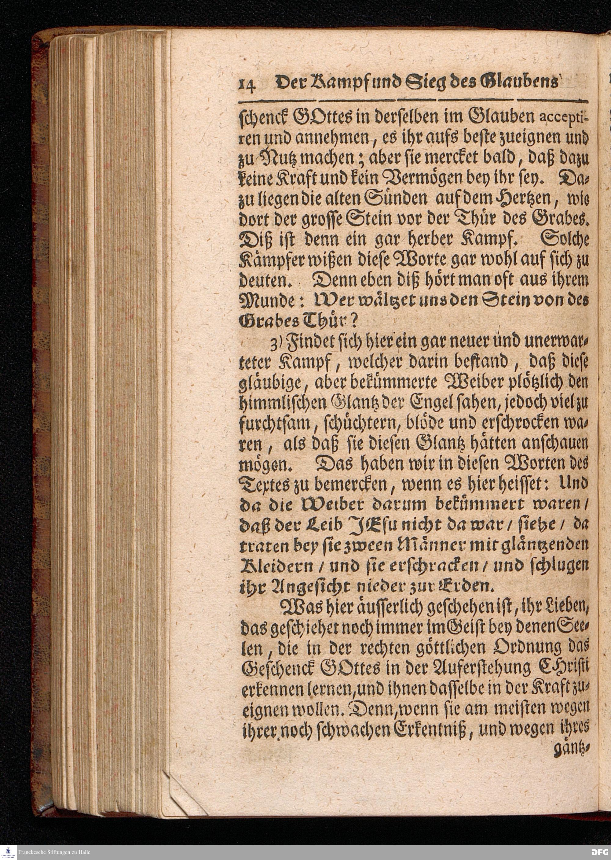 Der Kampf und Sieg des Glaubens Uber dem Geschenck GOttes in der Auferstehung JESU CHRISTI / Aus dem Anfang der Historie der Auferstehung JESU CHRISTI nach allen 4.Evangelisten Am Ersten Oster=Feyertage MDCCXVII. In der St.Ulrichs=Kirchen in Halle vorgestellet von August Hermann Francken / S.Theol.Prof.& Past.zu S.Ulrich, und des Gymnasii Scholarcha. HALLE, Gedruckt und zu finden im Wäysen=Hause, 1717.