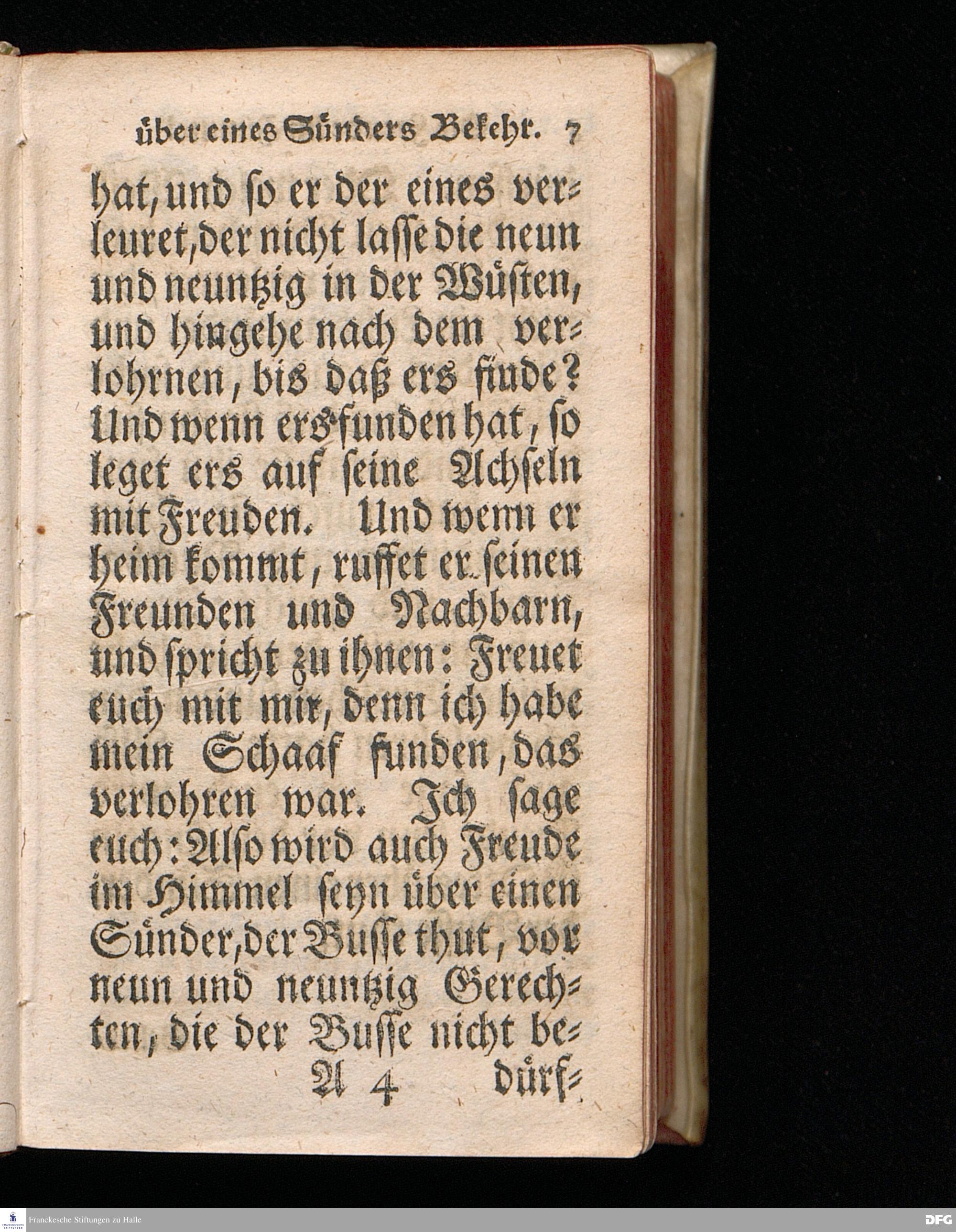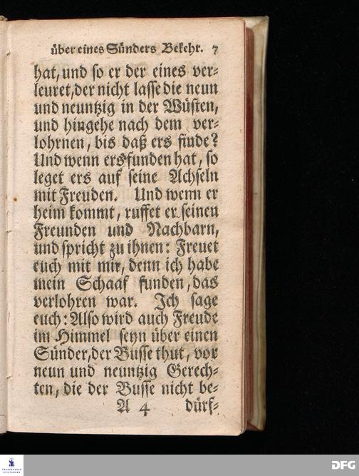 Die Freude im Himmel über eines Sünders Bekehrung, Am 3.Soñt.nach Trinit.1720. In einer über den ordentlichen Evangelisch.Text Luc.XV, 1=16. In der Kirche zu St.Petri in Cölln an der Spree auf geschehenen Antrag gehaltenen Predigt betrachtet und zum Druck überlassen von August Hermann Francken, S.Theol.Prof.Past. Vlric & Gymn. Schol. Andere Auflage. Der Schul=Jugend in den Glauchischen Anstalten nach gehaltenem Examine ausgetheilet den 24ten Aug.1720. HALLE, in Verlegung des Wäysenhause. 1724.