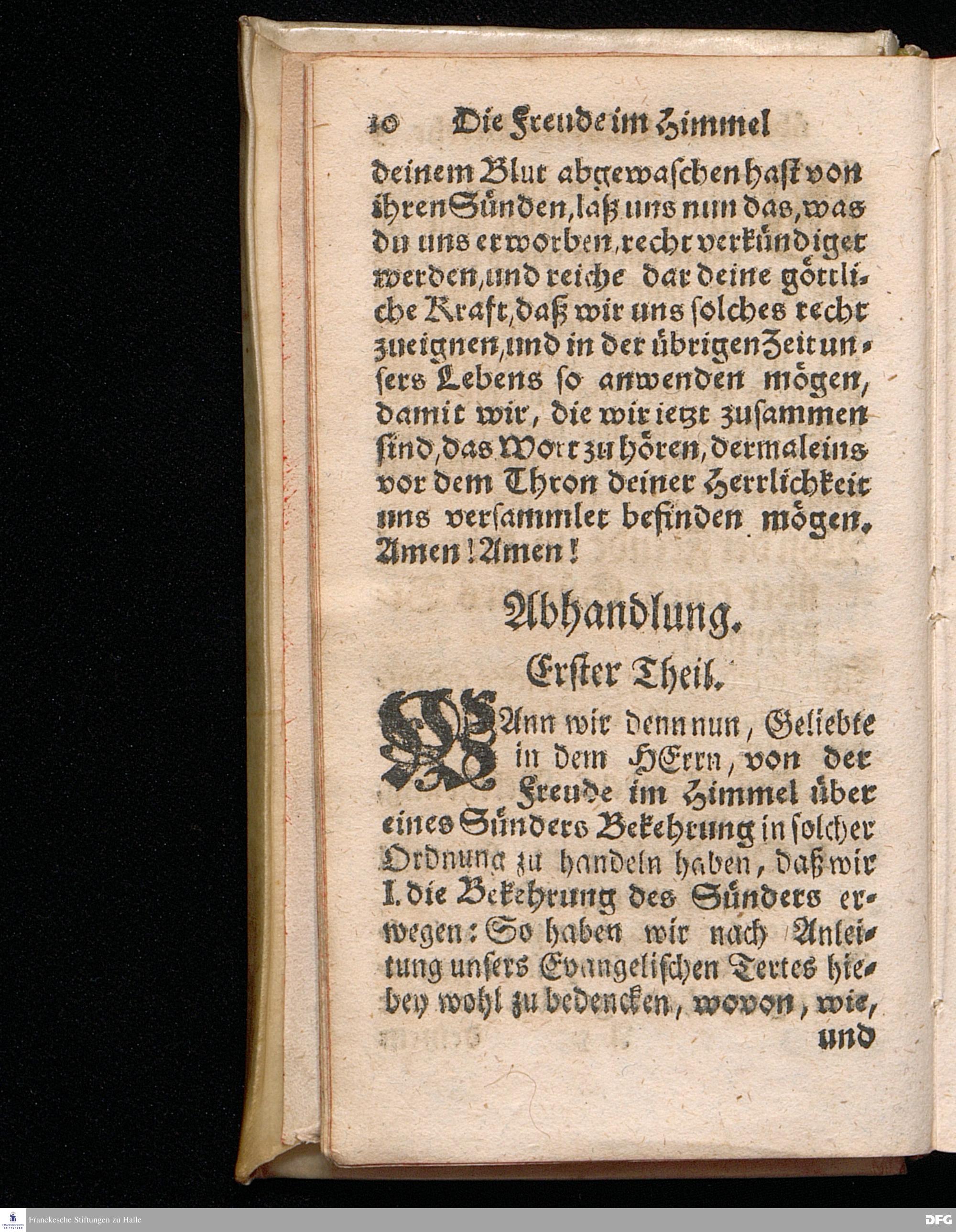 Die Freude im Himmel über eines Sünders Bekehrung, Am 3.Soñt.nach Trinit.1720. In einer über den ordentlichen Evangelisch.Text Luc.XV, 1=16. In der Kirche zu St.Petri in Cölln an der Spree auf geschehenen Antrag gehaltenen Predigt betrachtet und zum Druck überlassen von August Hermann Francken, S.Theol.Prof.Past. Vlric & Gymn. Schol. Andere Auflage. Der Schul=Jugend in den Glauchischen Anstalten nach gehaltenem Examine ausgetheilet den 24ten Aug.1720. HALLE, in Verlegung des Wäysenhause. 1724.