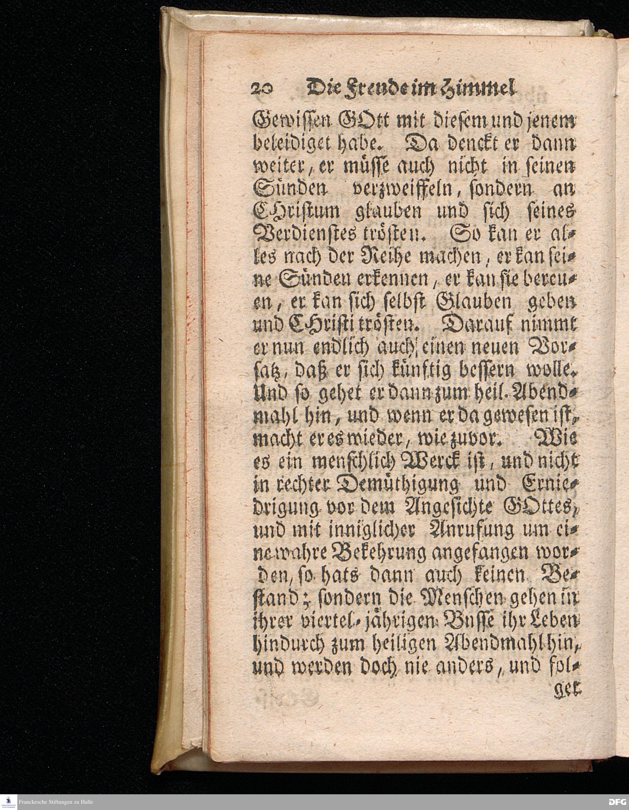Die Freude im Himmel über eines Sünders Bekehrung, Am 3.Soñt.nach Trinit.1720. In einer über den ordentlichen Evangelisch.Text Luc.XV, 1=16. In der Kirche zu St.Petri in Cölln an der Spree auf geschehenen Antrag gehaltenen Predigt betrachtet und zum Druck überlassen von August Hermann Francken, S.Theol.Prof.Past. Vlric & Gymn. Schol. Andere Auflage. Der Schul=Jugend in den Glauchischen Anstalten nach gehaltenem Examine ausgetheilet den 24ten Aug.1720. HALLE, in Verlegung des Wäysenhause. 1724.